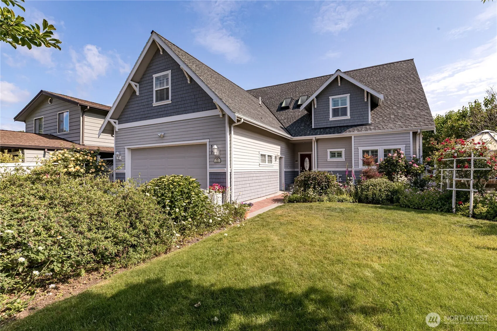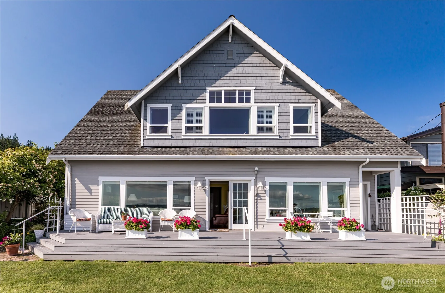 Life on the water couldn’t get any better than this stunning Cape Cod style Custom Built Beach Front home located on Beautiful Whidbey Island. Slow down & enjoy the constantly changing water & amazing sunrise views over Mt. Baker & the Cascade Mountains. Enjoy 60 feet of no bank sandy beach waterfront w/ concrete bulkhead & steps, gaze out at what nature is offering. Home features main floor Primary suite, Gourmet Kitchen w/ spacious center Island & custom cabinets, Owner designed propane fireplace w/ built in bookcases & mantle, upstairs has Family room, playroom, private office & sewing/craft/computer room . Robust flower gardens surround the property w/ brick walkways & greenhouse. Second small lot on the lagoon fenced with gardens