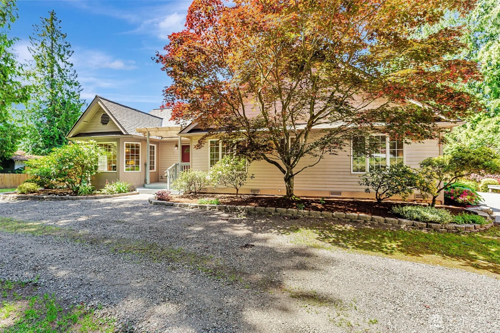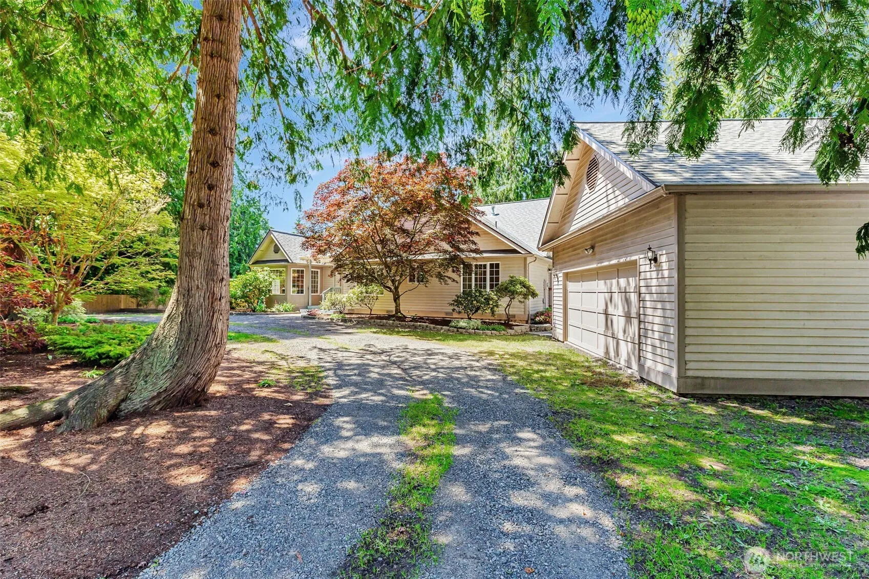 Welcome to paradise. This beautifully maintained 3-bed, 2-bath rambler sits on a lush half-acre, offering the perfect blend of comfort, privacy & outdoor living. The bright open-concept kitchen & sprawling living area are an entertainer’s delight, freshly updated w/ new interior paint. Gardeners will fall in love w/the fully-fenced, sun-soaked yard, complete w/planter boxes, fruit trees and a greenhouse. The detached 2-car garage provides ample space for hobbies, storage, or home workshop. Enjoy the convenience of a half-moon driveway, and unwind in your backyard oasis – a peaceful haven perfect for entertaining or relaxing. Best of all, this home includes PRIVATE BEACH ACCESS. Just minutes to Kingston Ferry and scenic trails. Welcome home!