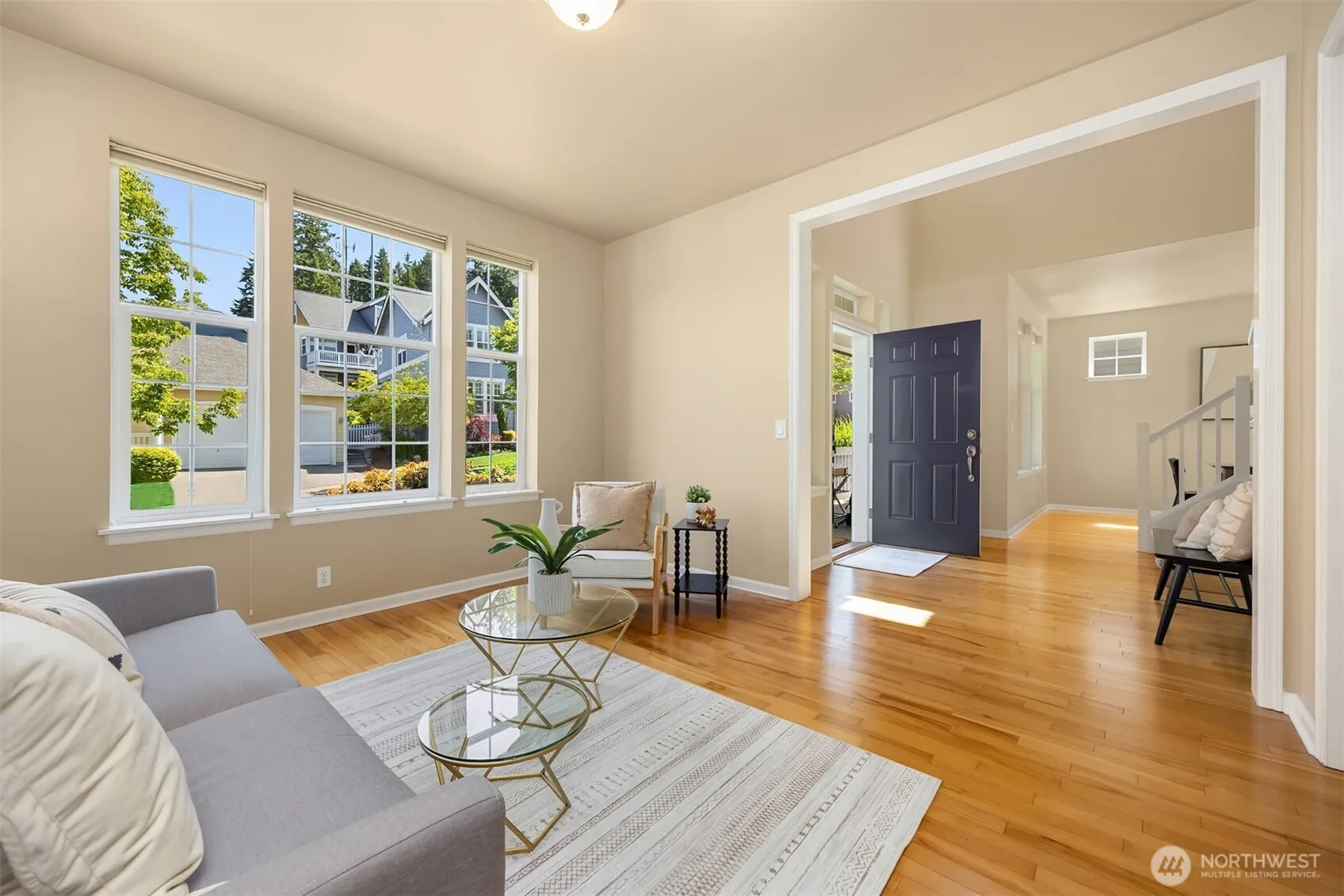 Beautifully maintained Poulsbo Place Craftsman home designed for comfort. This peach boasts an inviting floor plan with high ceilings, wood flooring throughout the main level & abundant natural light. The heart of the home features a spacious kitchen with granite countertops & stainless steel appliances that seamlessly flows into the living room, complete with a cozy fireplace. The living room opens to a covered deck, perfect for entertaining or quiet nights in. A formal dining room & a separate den provide flexibility. Upstairs, the private primary suite includes a partial view & 5-piece bath. The oversized garage (1071sqft) is a rare find, offering extensive space for parking, a workshop & storage. Heat pump & timeless details throughout.