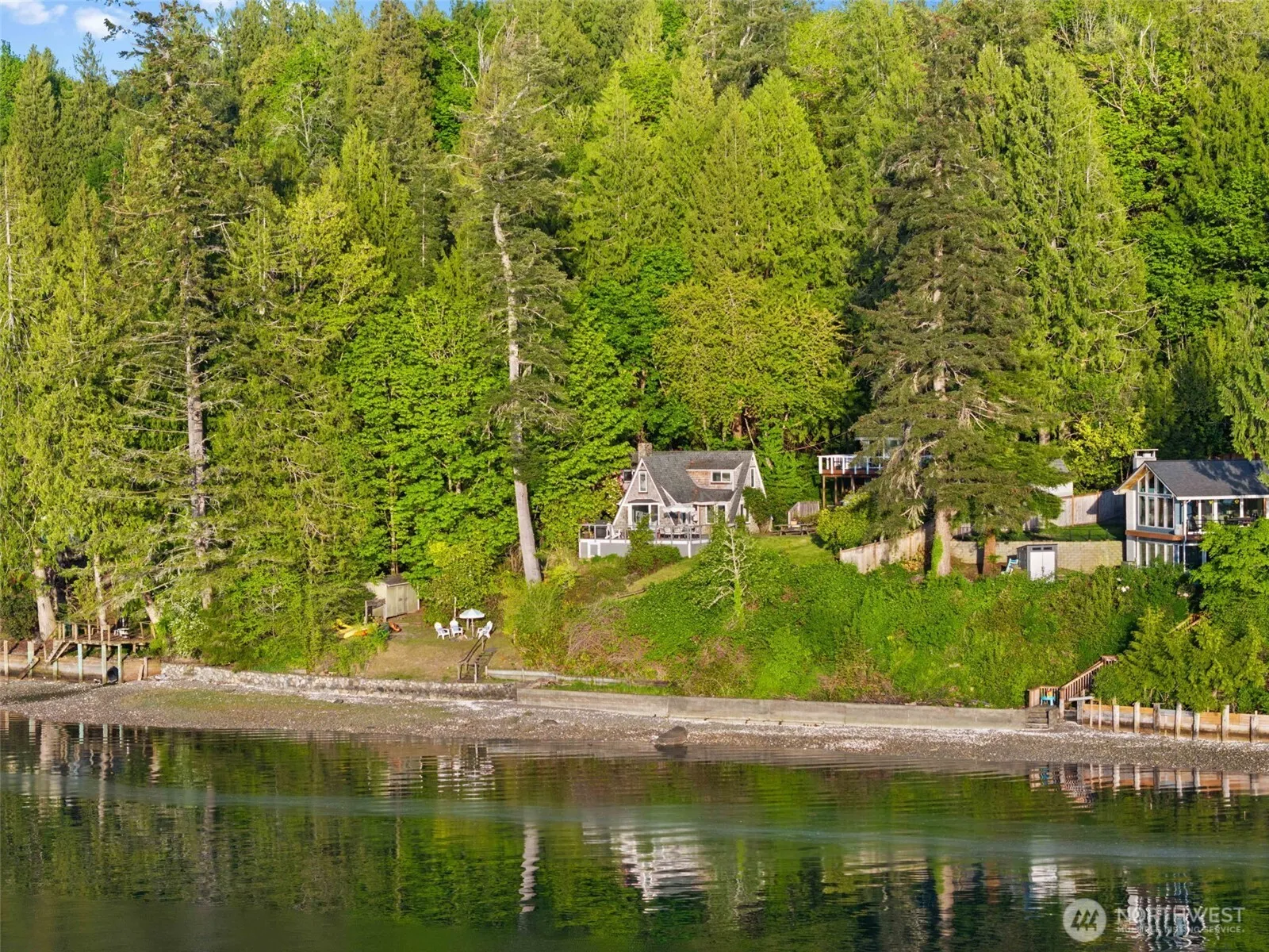 Secluded S. Hood Canal Waterfront Retreat. Discover the perfect blend of charm, privacy, & convenience just 1 mile from Belfair. This iconic 1938 stone beach cottage offers 114′ of low-bank waterfront along the warm, swimmable waters of Hood Canal. Ideal for kayaking, paddleboarding, or taking in the panoramic Olympic Mountain views from the spacious Trex deck. Tucked away on a tree-lined lot, you’ll enjoy seclusion, ample parking, & circular drive. The detached guest studio, w/ kitchen, utilities, & private deck, makes room for all your guests or rental income. Additional features include toy storage, bulkhead, &cozy fire pit. A truly special retreat in a coveted location, this is the legendary Hood Canal getaway you’ve been waiting for!