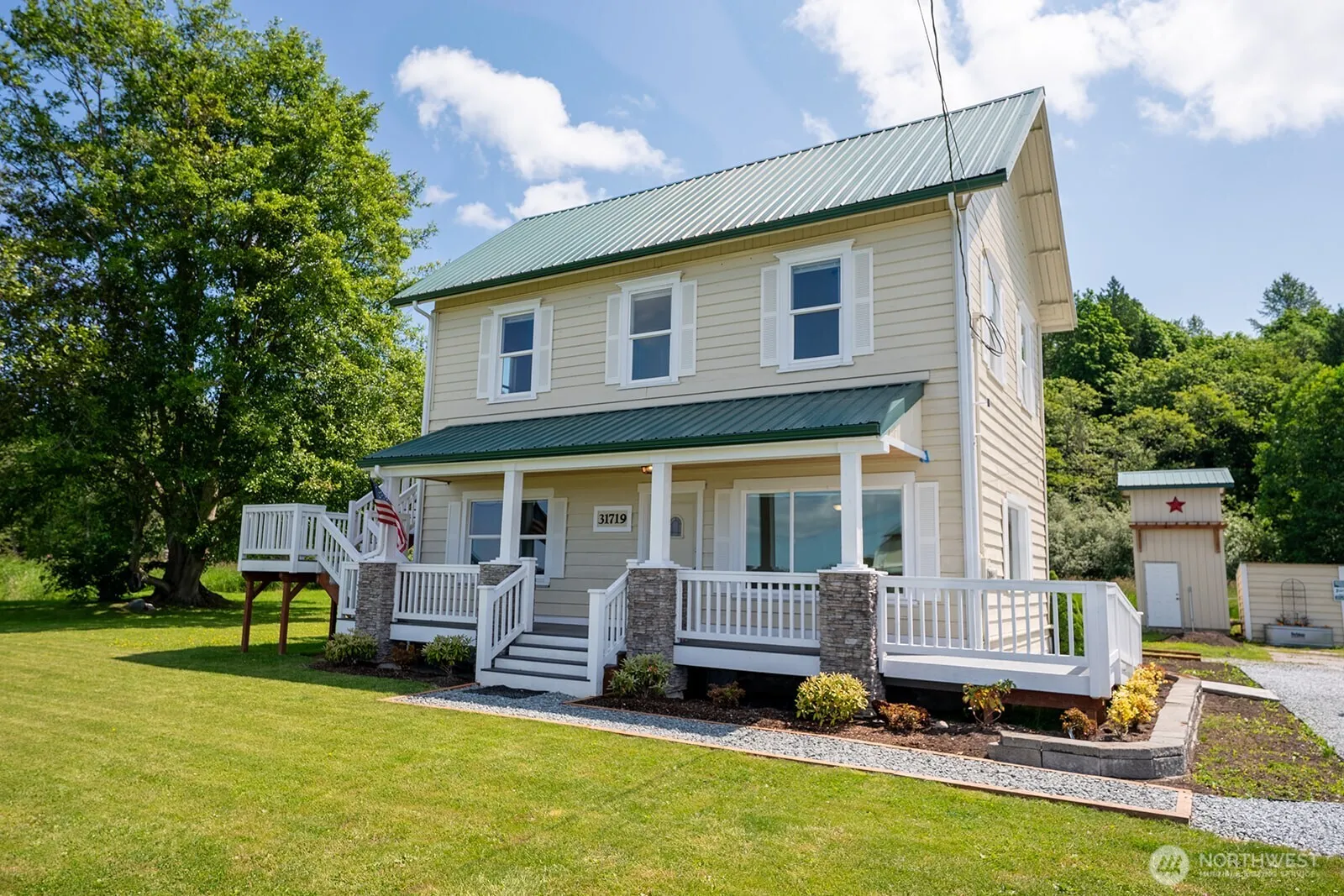 This beautiful 2,298 sq ft. remodeled 1885 farmhouse sits on 5.6 level acres & offers expansive scenic views, surrounding farmland, & gorgeous sunsets. Thoughtfully updated while retaining its historic charm, the home features two separate living spaces ideal for multi-generational living, rental income, or guest accommodations. The upstairs unit includes 1 bedroom, 1 bathroom, stainless steel appliances, a washer & dryer, & a private 10×10 deck w/scenic views. The spacious downstairs unit offers 2 bedrooms, 1 full bath & 1.75 bath, a charming country kitchen, a large living room, a formal dining area w/a cozy kitchen nook, & a generous mudroom with laundry. Built on a solid cement foundation with a durable metal roof. Move in ready!