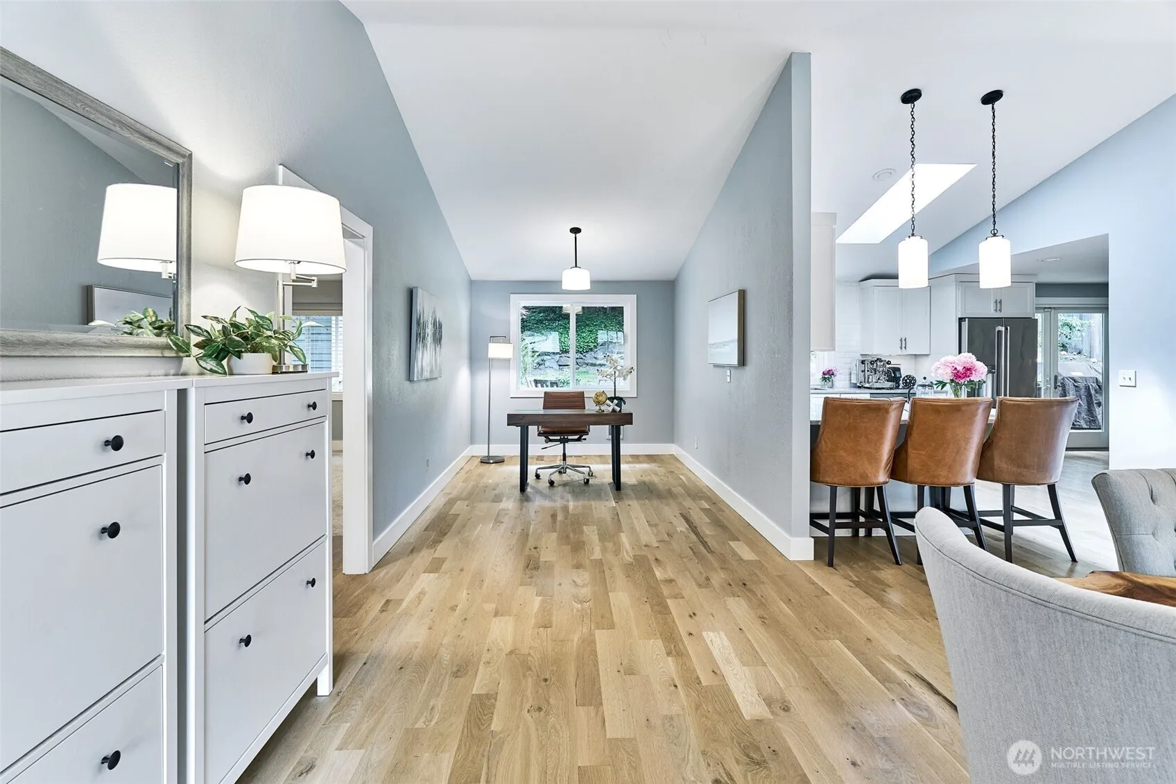 Beautifully updated Mill Creek rambler on 1/4 acre lot! You’ll love the open concept layout and high ceilings. Chef’s kitchen boasts stainless steel Café appliances and peninsula with bar seating. Spacious dining area is perfect for entertaining! The den offers a great home office or flex space. Primary suite features a stylish en-suite bath and walk-in closet. Down the hall you’ll find a 2nd updated bathroom and 2 additional bedrooms. This property is a gardener’s paradise! Enjoy gorgeous mature landscaping, fully fenced backyard, and fully finished out building that makes a great home gym or office! Close proximity to freeway access and minutes from the Mill Creek Town Center!