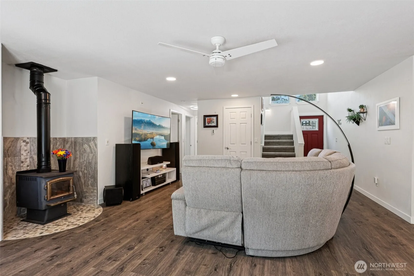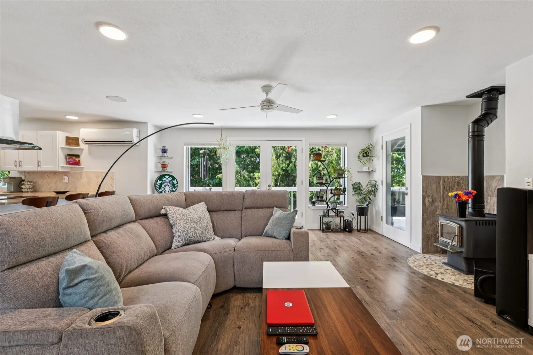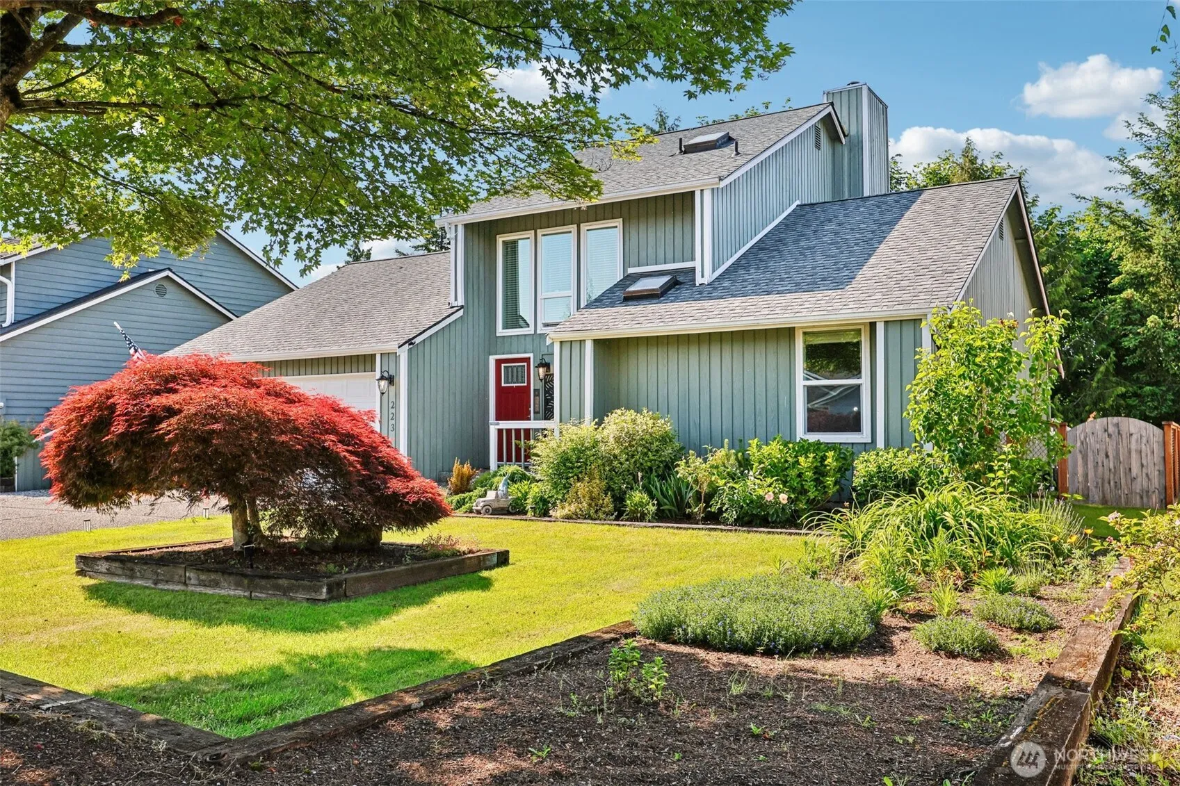 Immaculate home on a quiet cul-de-sac in Arlington’s desirable Kona Crest neighborhood! Backing to peaceful green space, this beautifully maintained property offers privacy and thoughtful upgrades throughout. The remodeled kitchen (2022) showcases quartz counters, herringbone tile backsplash, crisp white cabinetry, stainless steel appliances, and a center island with range hood—perfect for entertaining and everyday living. The spacious primary suite features a jetted tub in the bedroom and an updated en-suite bath with double vanity, lighted mirrors, and walk-in shower. Both bathrooms feature skylights, allowing in soft, natural light. Step outside to a large deck with covered BBQ area, oversized garage, an extended driveway. Move-in ready!