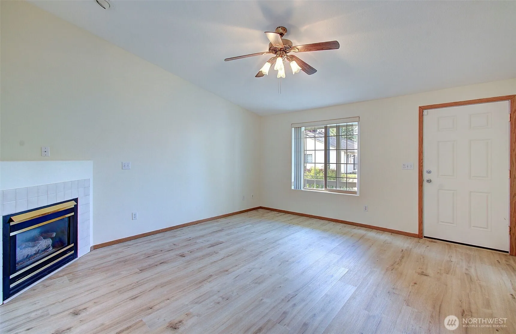 This charming 2 bed, 2 full bath single-level home with new flooring throughout. Kitchen includes an island, built-in dishwasher, new countertops and plenty of cupboards space. Vaulted ceilings, corner gas fireplace, with a fan highlight the spacious living room. The primary suite features an en suite bathroom and a walk-in closet. Large garage offers ample space for parking and storage. Located in a quiet community with a small-town feel, just minutes from downtown and Old Town Battle Ground. Move in ready!
