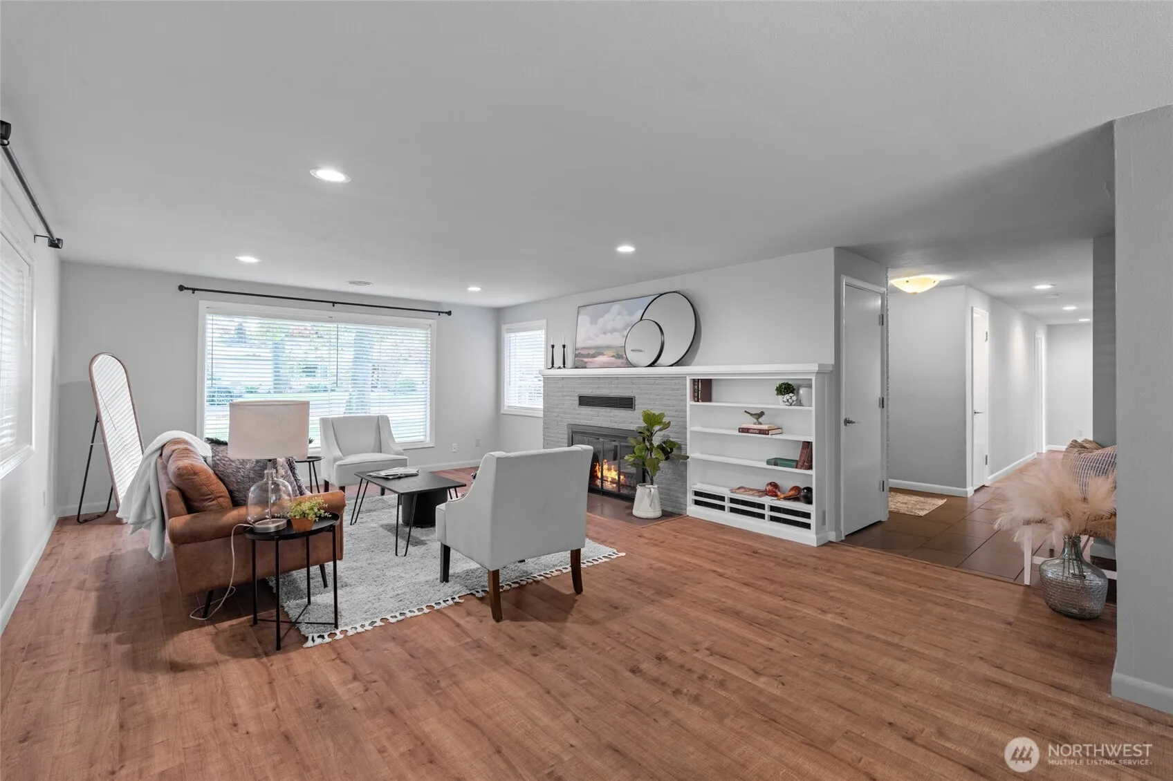 Step into this tastefully appointed 1940s gem featuring four generous bedrooms and two and a half fully updated bathrooms. With many updates including newer paint, new roof, flooring, and cabinets, this home seamlessly blends classic charm with modern comfort. Enjoy extra-wide hallways and a spacious living and dining area, along with a private backyard and a two-car garage, making it perfect for comfortable living and entertaining experience.