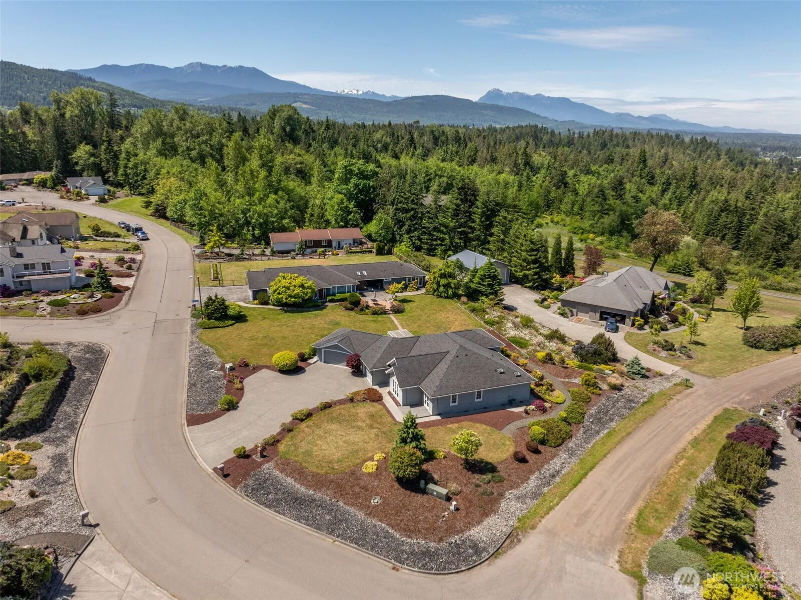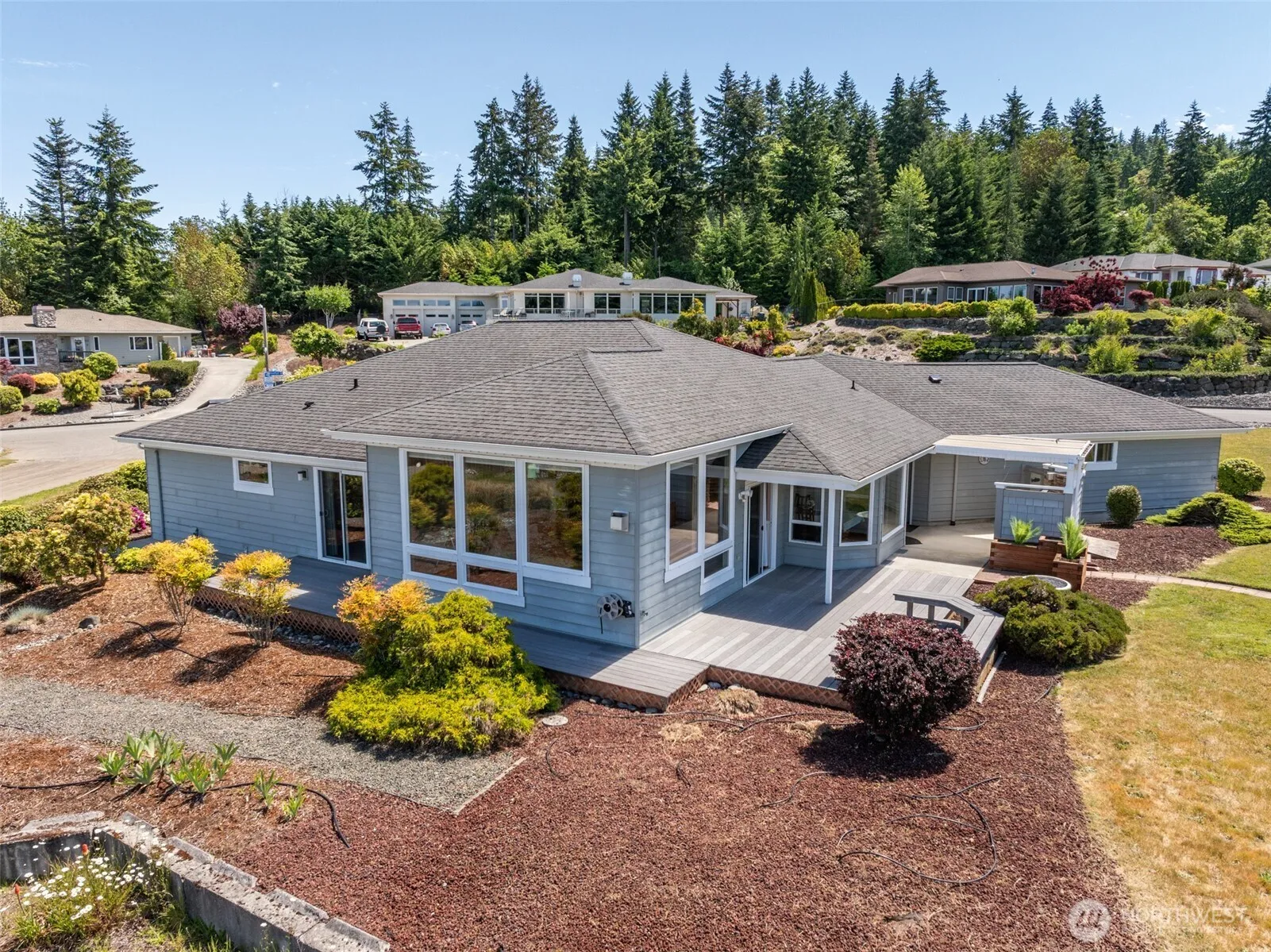 Beautiful water view home built by on 0.42 acres in the tidy Emerald Highlands neighborhood of Sequim. Single level, open floor plan with crown molding, wainscoting and a 3 car garage w/epoxy floors. The great room offers 10 foot ceilings, 2 sided propane fireplace and big picture windows looking out to the Strait of Juan de Fuca and Canada beyond. Kitchen offers a large island w/cooktop and bar seating, custom cabinets and Corian counters. Dining area off of the kitchen w/door out to partially covered Trex deck area and BBQ pit. Primary BR has door out to it’s own deck, big walk in closet and large bathroom w/jetted tub, 2 separate counters/sinks. Two more BRs plus a den/office. Fantastic view property on a great parcel in lovely Sequim.