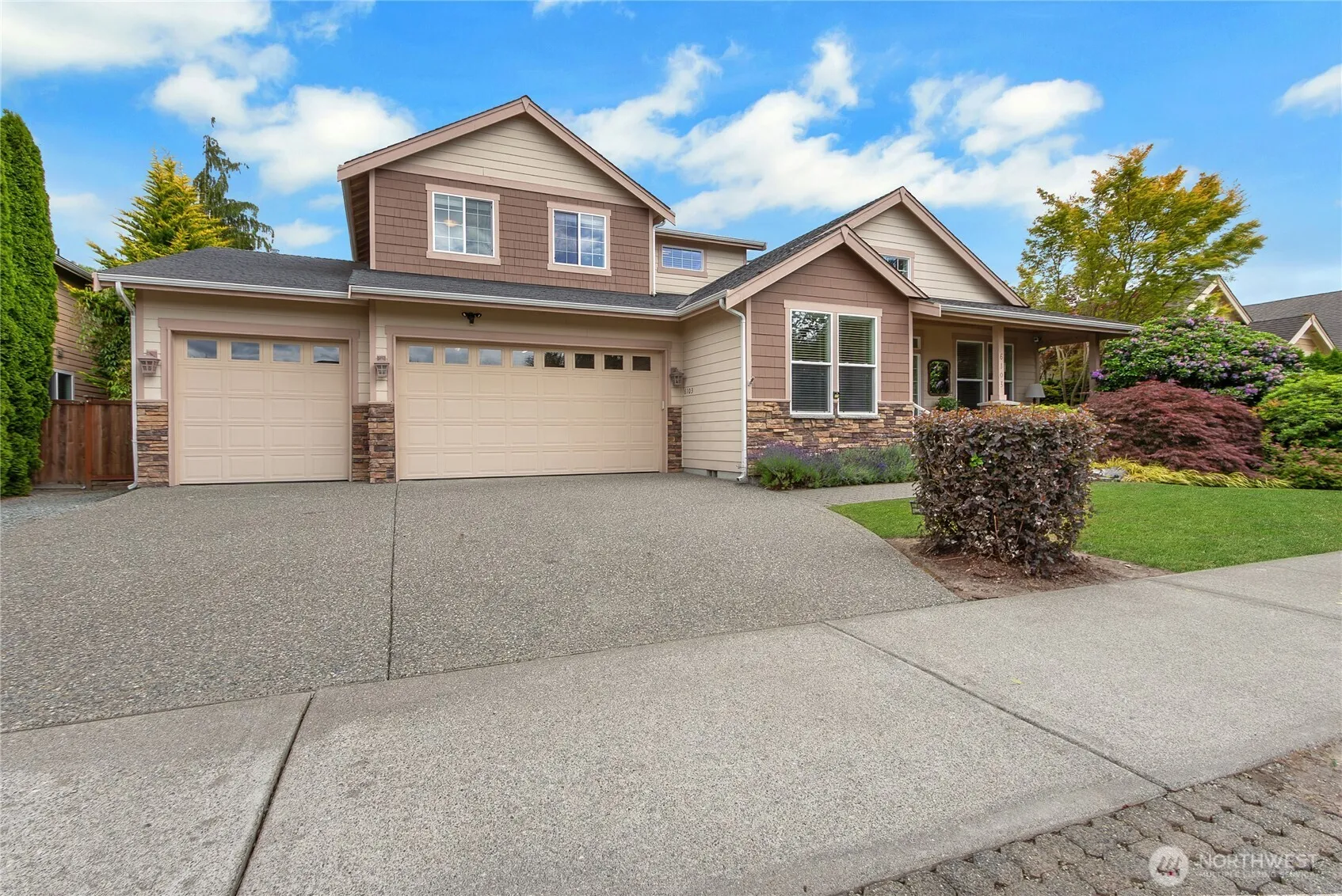 Stunning home near historic downtown Sumner offering perfect blend of style, comfort, & functionality! Open layout w/ all you need on main floor enhanced by beautiful inlay hardwood floors. Inviting kitchen features large island and flows seamlessly into spacious living room. Desirable main floor primary w/ en-suite provides privacy & convenience, while versatile 2nd bedroom also on main can serve as flex room adaptable to evolving needs. You’ll find A/C, dedicated home office, bonus room, & generous 3-car garage w/ ample parking. Step outside to a covered deck w/ gas line for BBQ, hot tub & sprinkler system – perfect for year-round enjoyment. Located close to schools, everyday amenities, and easy freeway access. This home has it all!