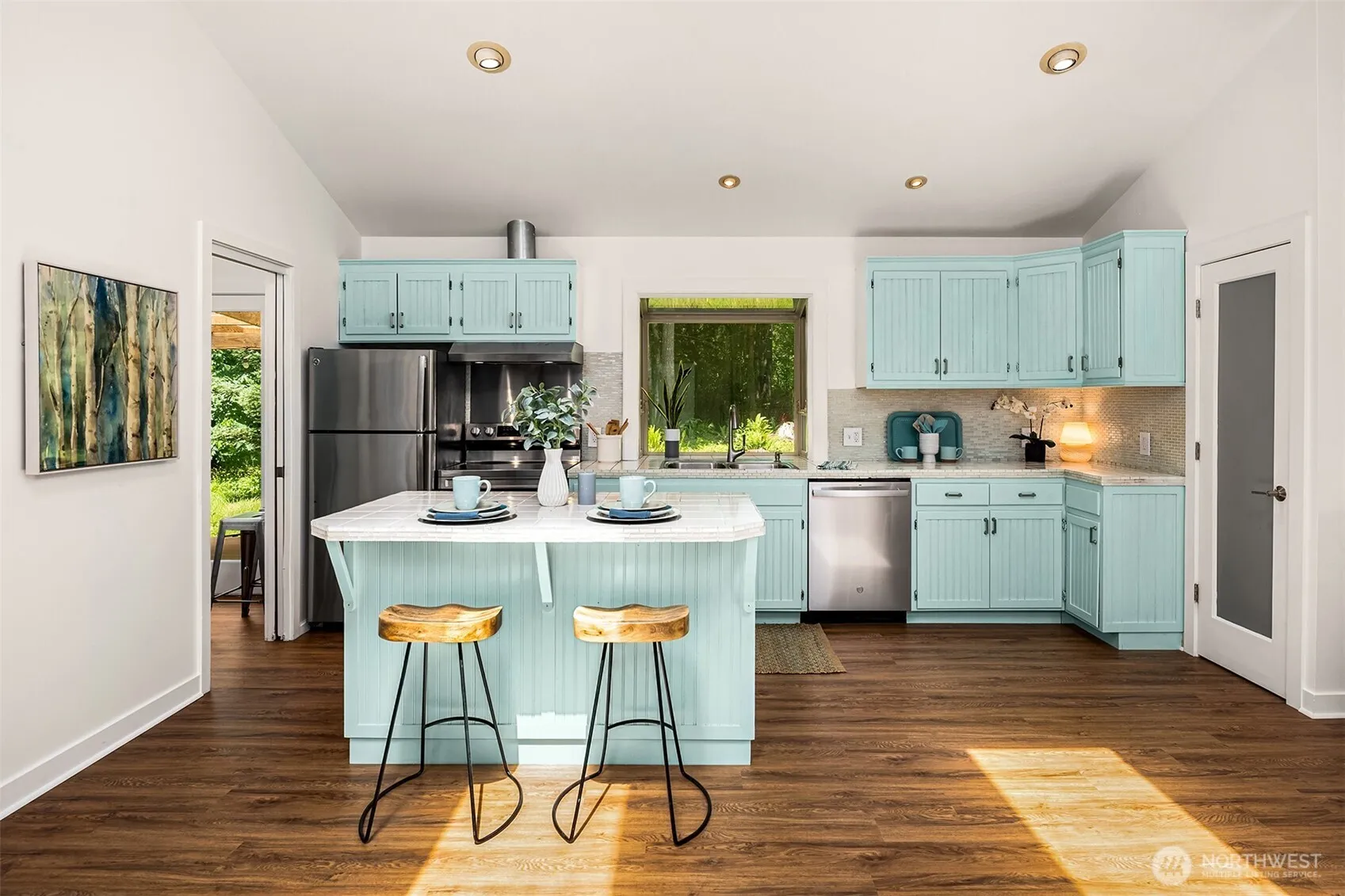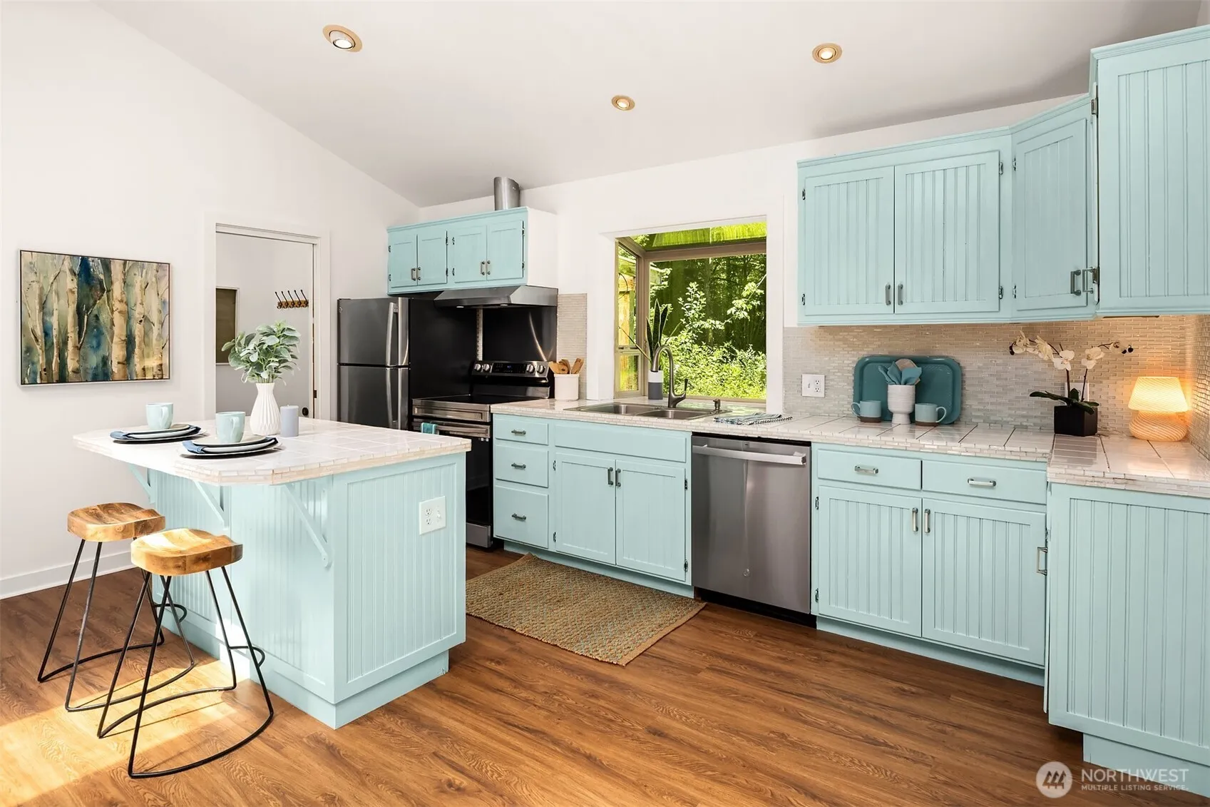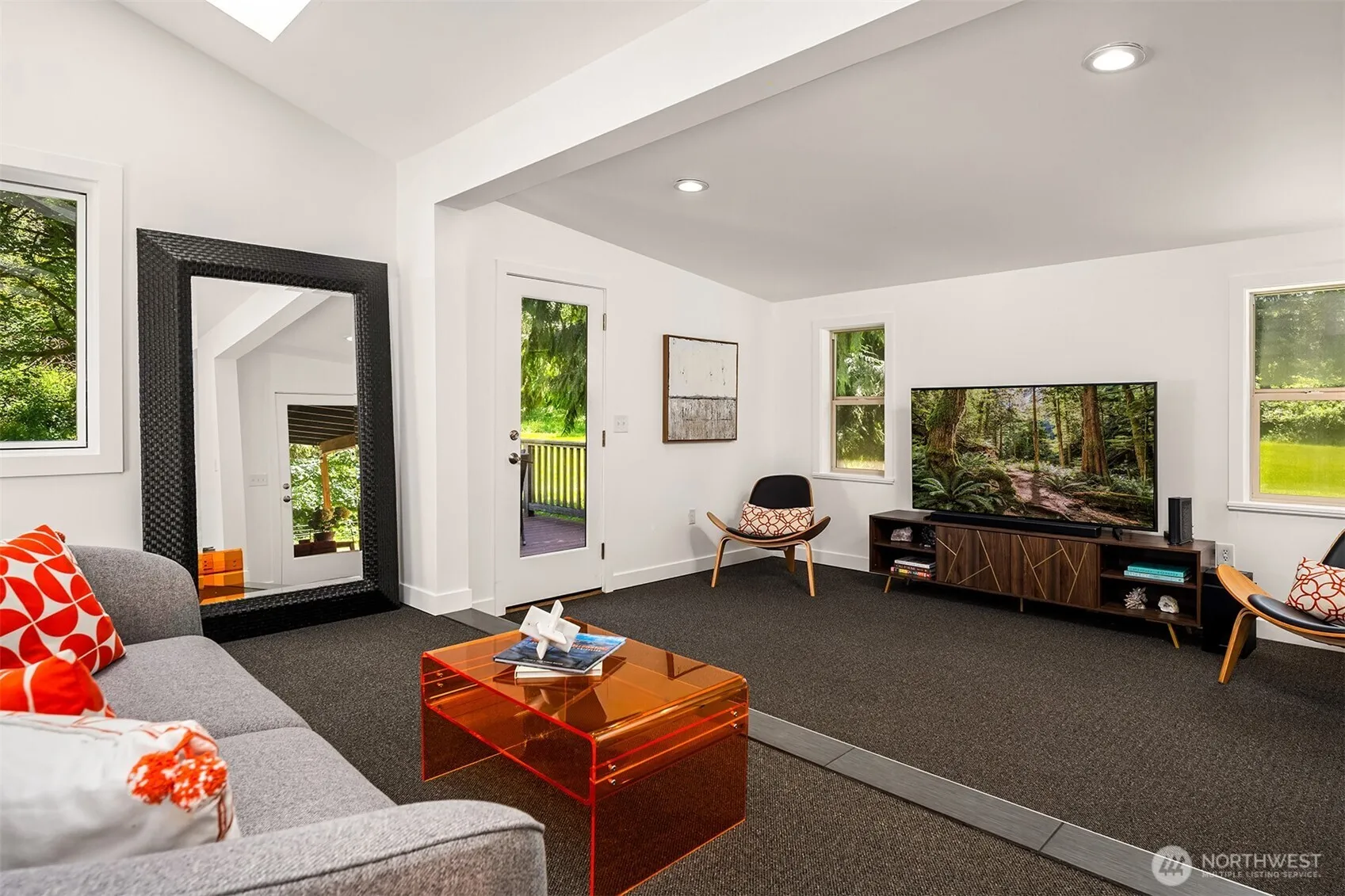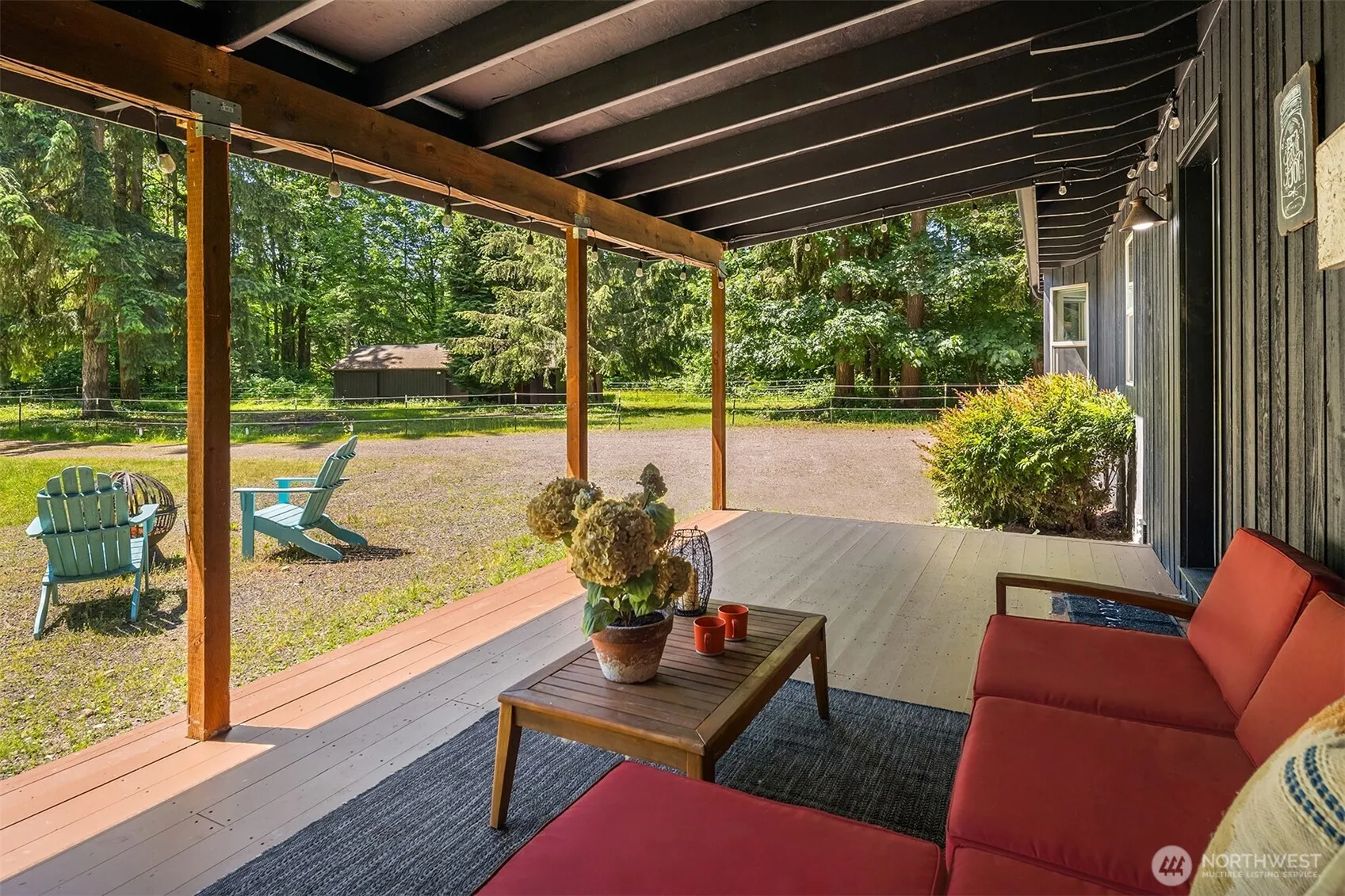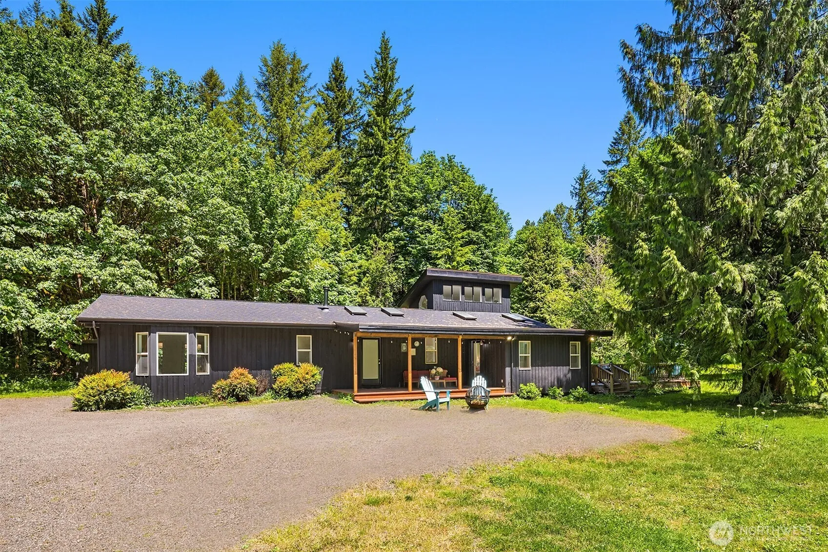 Contemporary style Rambler with open-concept floor plan featuring 1,650 SF of style with vaulted ceilings, skylights and numerous upgrades. All the serenity your heart desires on this 7.37 private acres with approximately 3.5 flat usable acres. Barn and 2 loafing stalls. Enter this charmer through the large covered country porch and feel like you are home. Spacious kitchen with stainless appliances, center island, pantry & new vinyl flooring. Great-room style dining and living room with access to two entertaining decks. Massive primary suite with full bath and private covered deck, plus a second main floor bedroom and remodeled 3/4 bathroom. Extra loft “cows nest” is perfect for office, reading or enjoying the scenery. Only 15 min, to town.