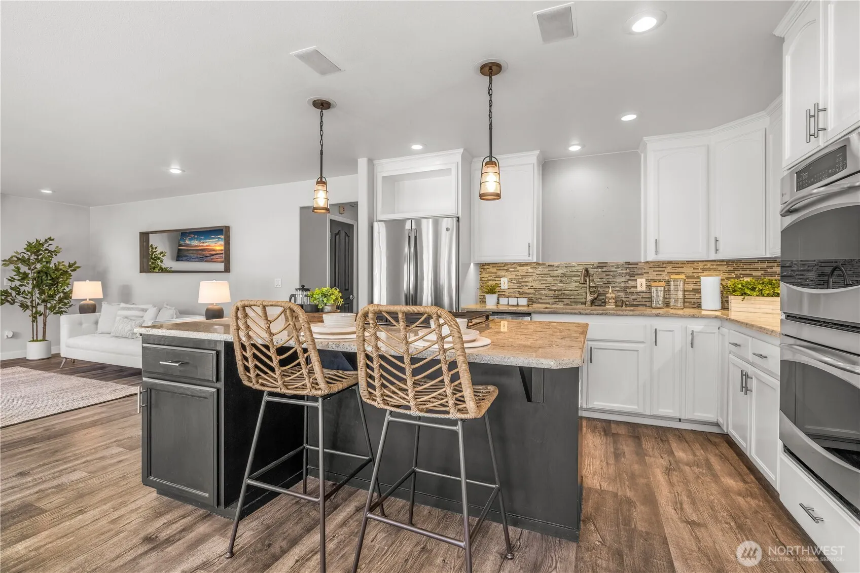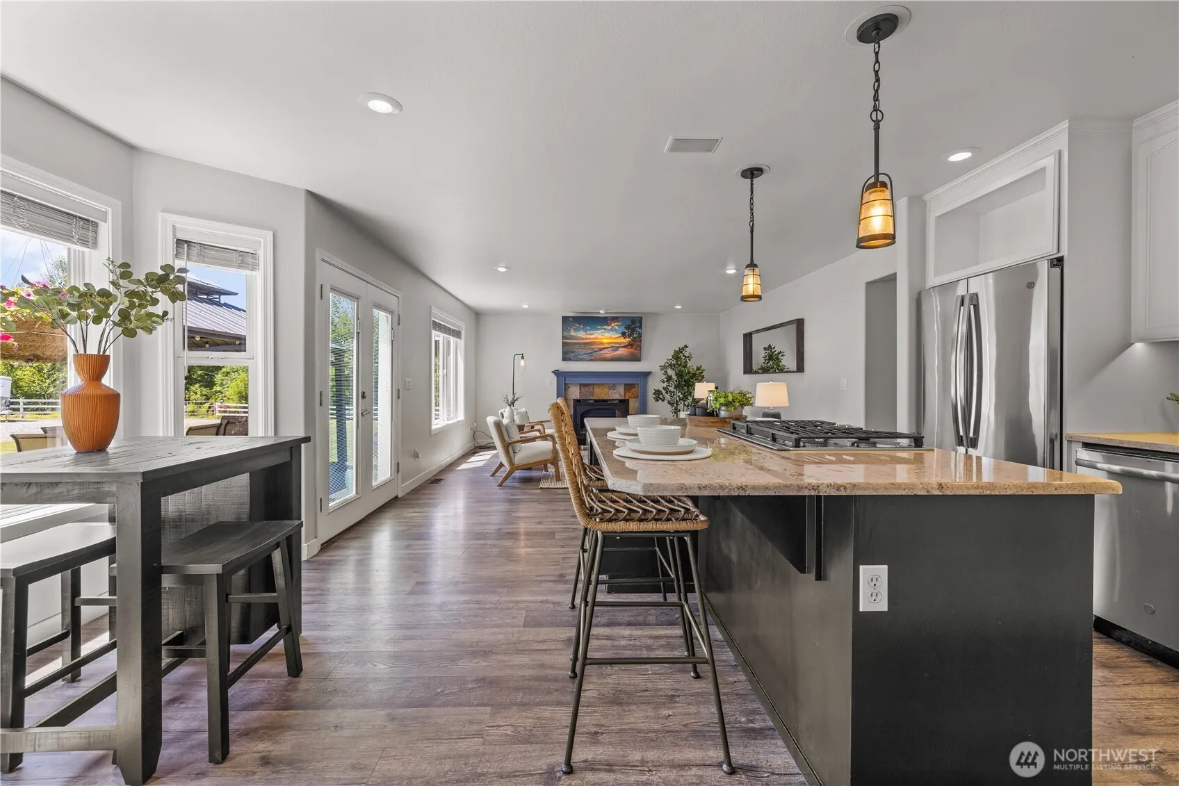 Welcome to an exquisite equestrian retreat in Wapiti Ridge! This expansive 2569 sq ft, 3-bed, 2.75-bath home sits on 5 usable acres, fully fenced complete with cross-fencing and a seasonal pond. Enjoy breathtaking views of Mt. Rainier from this quiet, gated community. Features include a private well, purification system, a private solar entrance, heat pump/AC, and wiring for a whole-house generator. Equestrian-ready, with a 36×36 barn featuring stalls, power, water, and the ability to convert into a shop. Ample trailer parking with LQ turnaround, two fire pits, two fireplaces, a pergola, and a monitored fire system enhance this remarkable retreat. This home combines luxury and functionality in a quiet neighborhood.