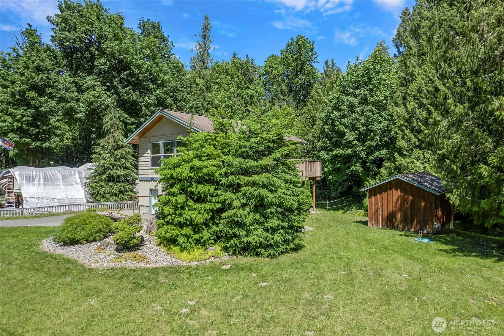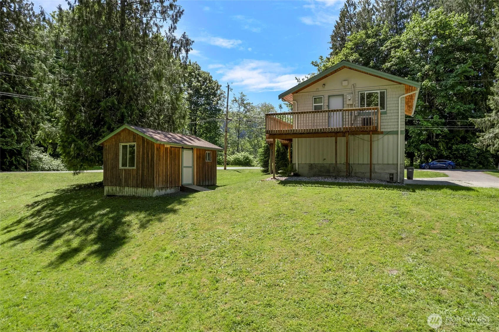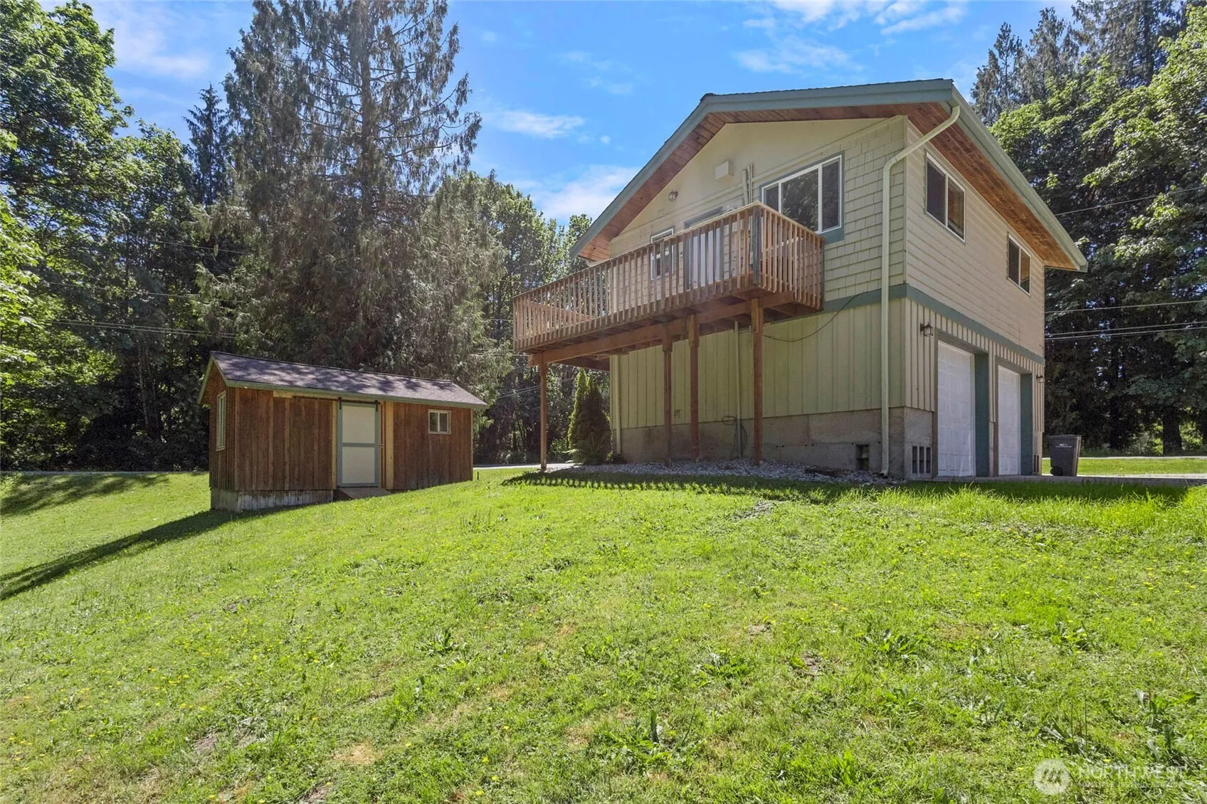 Welcome to this large corner lot w/fully renovated home in the heart of the PNW. This home with a river view has been thoughtfully refinished from the floors to the walls, lighting, the kitchen, appliances & more! Clean, sleek & excellent use of space, this home makes the perfect starter or investment home that is ready to go from day one. Soaring ceilings give a roomy feel to the main living area that is open to the kitchen as well, w/large windows letting in ample natural light. French doors lead out onto the large deck that looks towards the river. The large driveway offers extra parking space in conjunction w/the two car garage & detached shed, offering extra storage space and room for hobbies. Don’t miss this wonderful home!