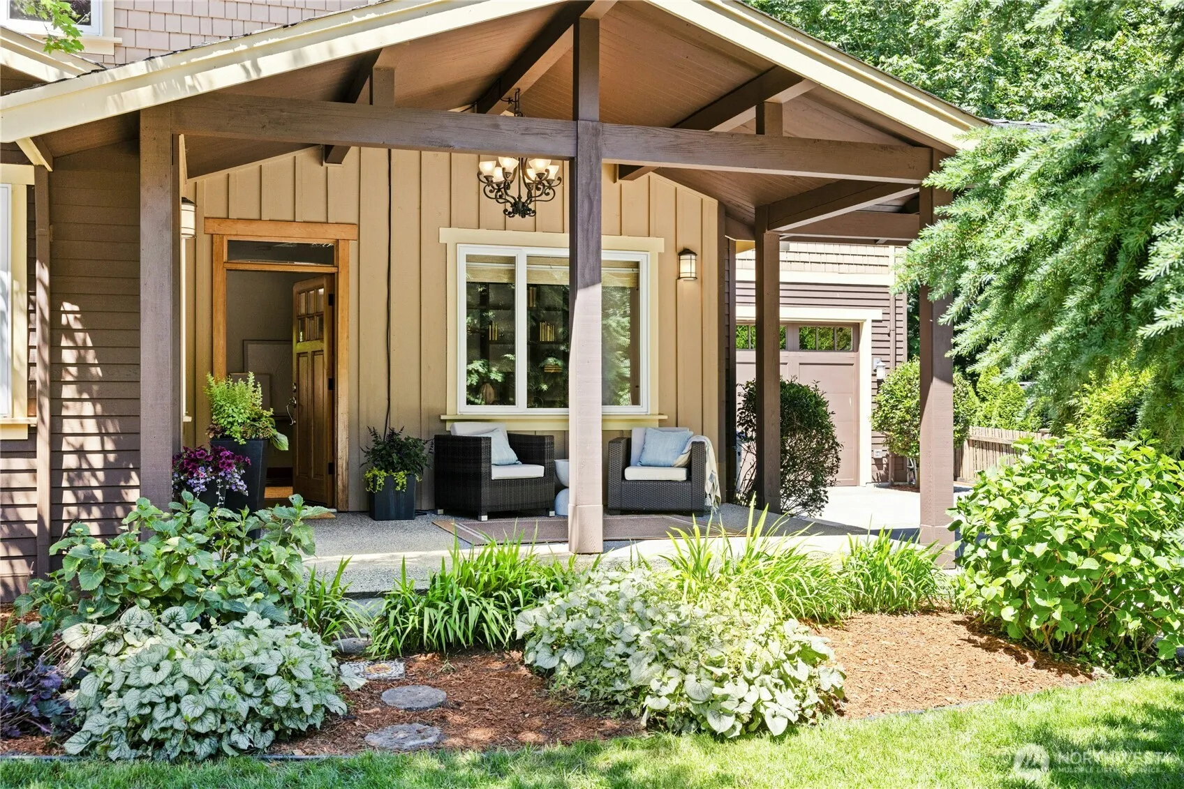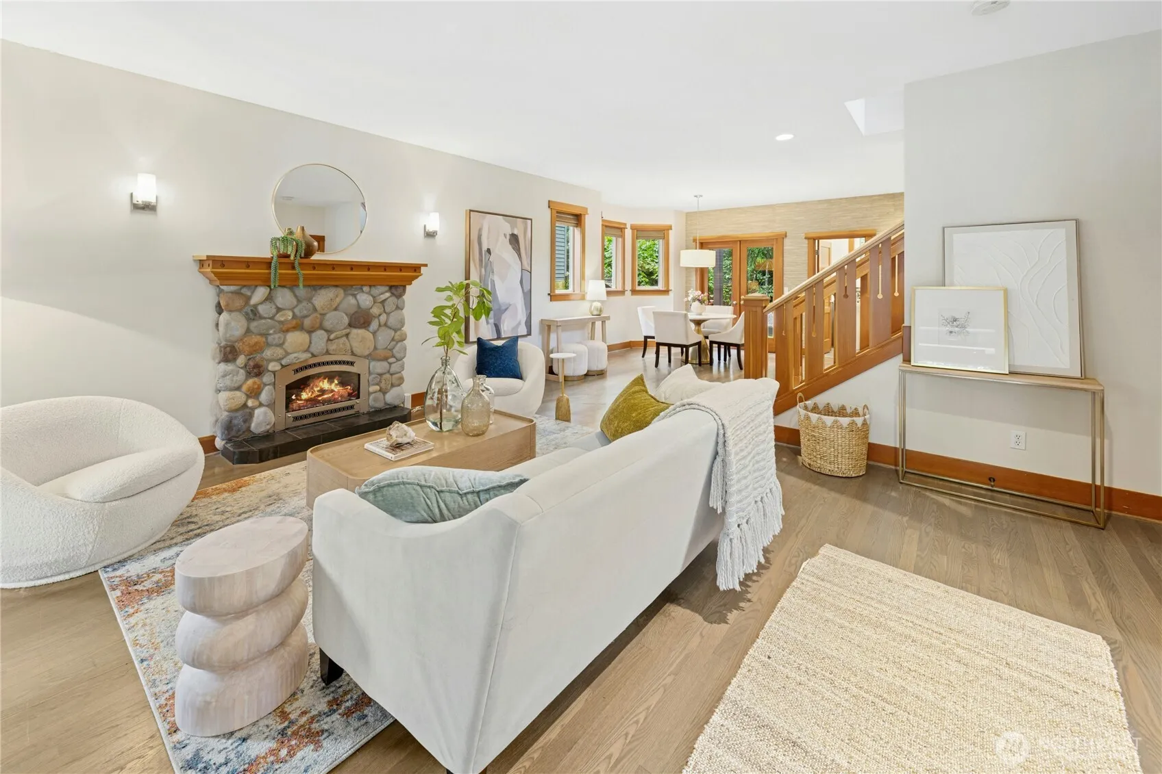 This remodeled Craftsman home unites modern updates with classic charm. New windows and 9′ ceilings create a bright inviting interior, while the river-rockfireplace and wood trim add character. A quality, solid build by Bruce Zwicker. The updated kitchen has a new dual-fuel stove, quartz countertops, and custom cabinetry. Newly renovated bathrooms include a luxurious primary bath with soaking tub and rain shower. A dedicated office and large bonus room both have custom built-in storage. The fenced low-maintenance backyard features a hot tub & fire pit. Located in the coveted North Town Woods neighborhood with easy access to schools, trails, services, and public transportation. Extensive updates. New Roof scheduled for early September.