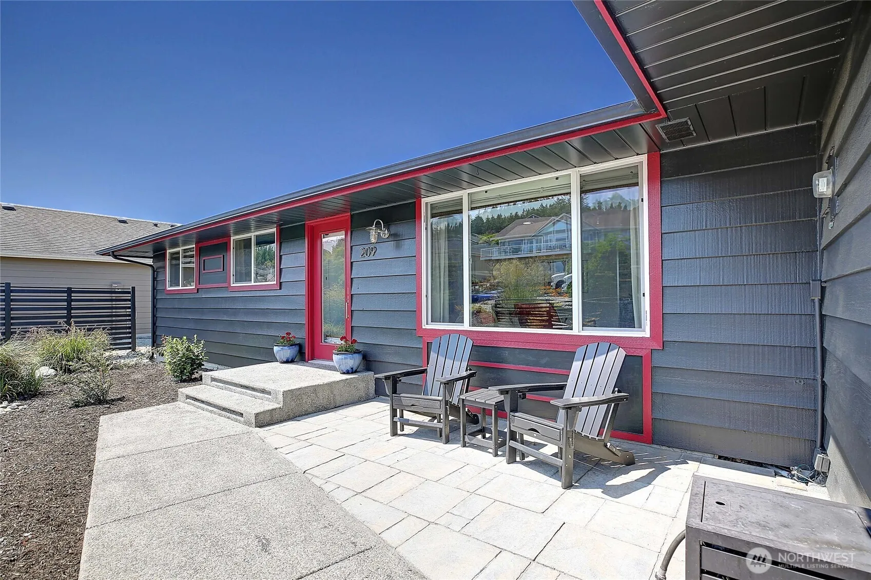Gorgeous Madrona Beach View Home, Easy Level Single-Floor Living with Open Layout and Fenced New Yard! First time on market, this 3 bedroom/2 bath home features Engineered Bamboo flooring, gas fireplace, and a finished 2-car garage. Stainless Steel newer appliances, lovely view kitchen, air-conditioning with heat pump. Electric vehicle charging, high-speed broadband, and hardscaped front yard for low-maintenance. Private Back Patio w/ Space to Play. Brand-new Envirotek 3-bd septic, wonderful water system and great, quiet community just a few blocks from an incredible private shoreline on Puget Sound’s Saratoga Passage. Beachcomb, kayak, crab, picnics and whale watching. Welcome Home!