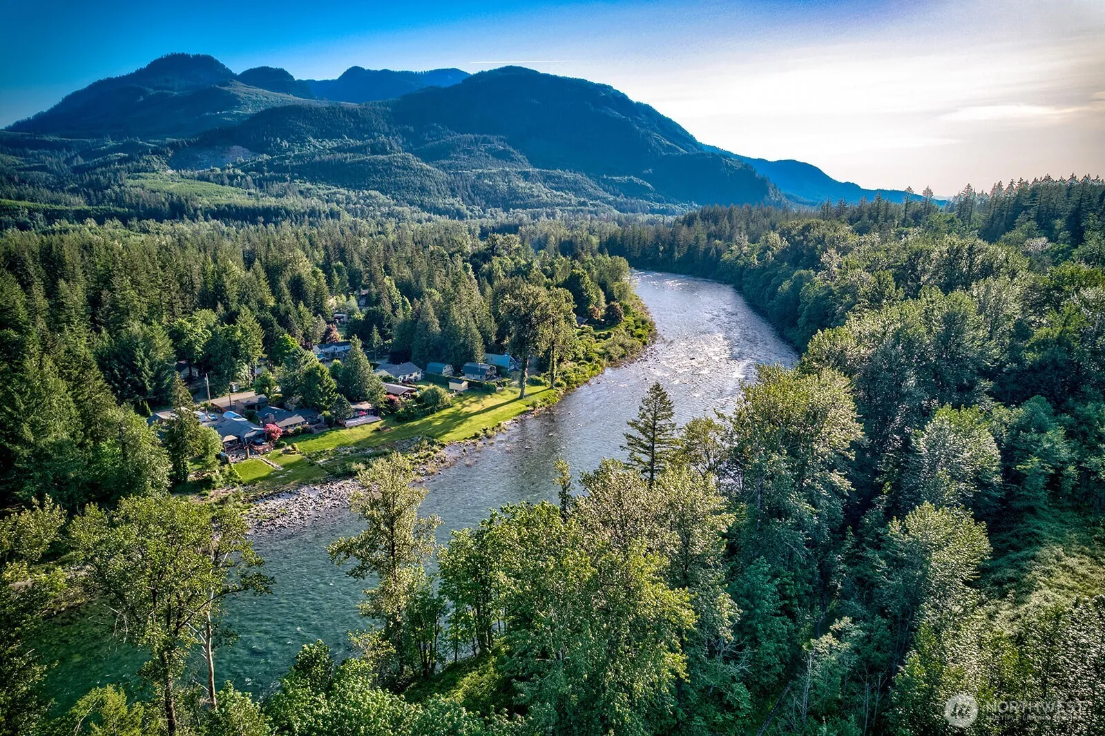 At Big Bend on the Skykomish, where Cascade peaks and rolling foothills meet historic Highway 2, your river house beckons, “welcome to your adventure.” Located on the Cable Hole, a famed steelhead fishing and swimming spot, witness cascading waterfalls as bald eagles dive for dinner from your wraparound cedar deck and expansive grassy bank at this 21k+ SF riverfront retreat. Huge windows reveal mesmerizing river views bringing the outside in along with oak hardwoods, live edge bar, cedar-lined bath and woodburning fireplace. Circular parklike drive with river rock and evergreens affords car, boat, RV parking. Community offers 3 private parks with beach, fishing hole, sport court and playground. Stay and play, or invest as a vacation rental.