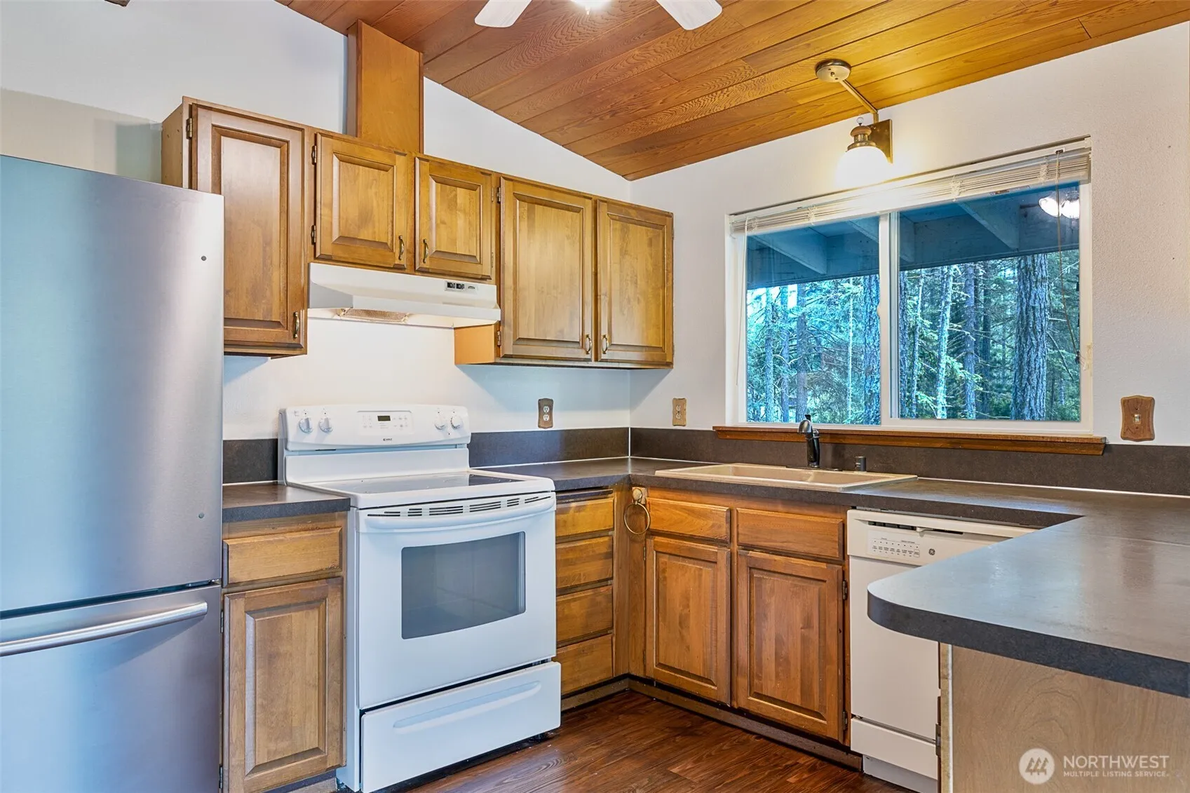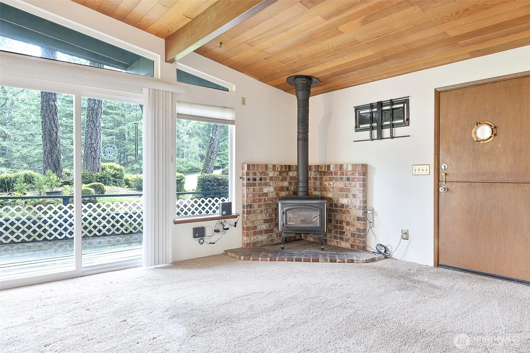 Take a look at this single level living three bedroom and 1 3/4 bathroom home located in the Alderbrook community. The great room has loads of windows with views of the golf course along the 11th fairway. The wood stove provides warmth on cooler days. Cathedral ceilings offers an open feeling and is accented with wood tones and exposed beams. The dining room is adjacent to the kitchen and great room. A lower maintenance lot offers a wrap around deck. The oversized one car carport has a storage room and room for RV parking. HOA covers UNLIMITED golf for 2 and access to tennis, park, trails, community center and garden, pickleball, basketball, kid’s play area, picnics, and more. Ask about the assumable loan with low interest rate.
