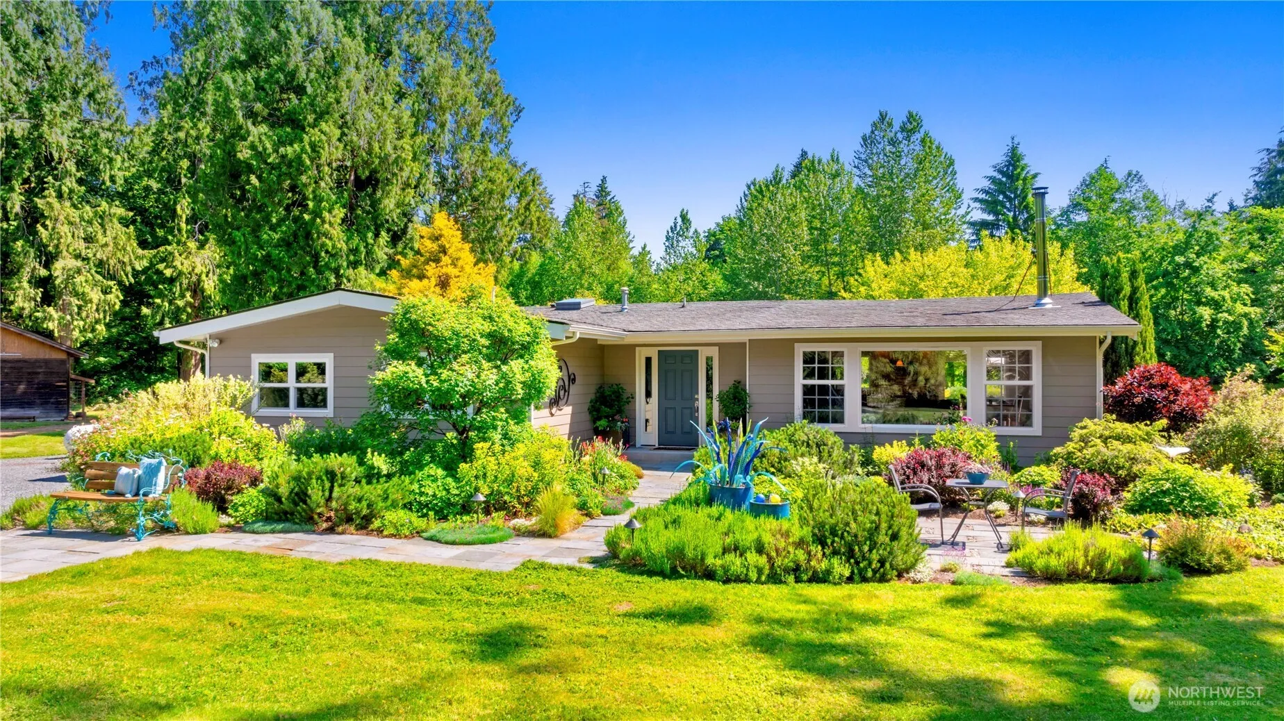 Escape to a private & pre-inspected paradise in this remodeled rambler above the stunning Snoqualmie River Valley & nestled on 5 flat, sun-drenched acres of professionally designed deer-resistant landscaping, lush lawns & meadows! Light-filled interiors blend comfort & style with/ thoughtful updates throughout. Kitchen/dining open to great room w/ cozy wood stove & french doors connect you to outdoor spaces! Step back in time w/ 36×36 barn; perfect for hobbies, events, storage or animals, & detached garden studio ideal for office, art, or peaceful retreat. Whether entertaining under the open sky, soaking in the serenity of nature or homesteading, this is the perfect blend of modern living & country charm. A rare gem where dreams take root!
