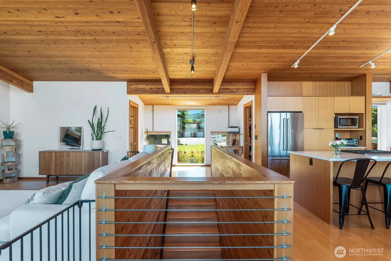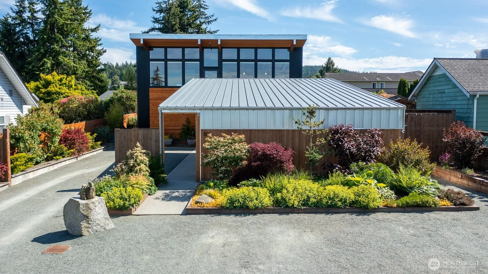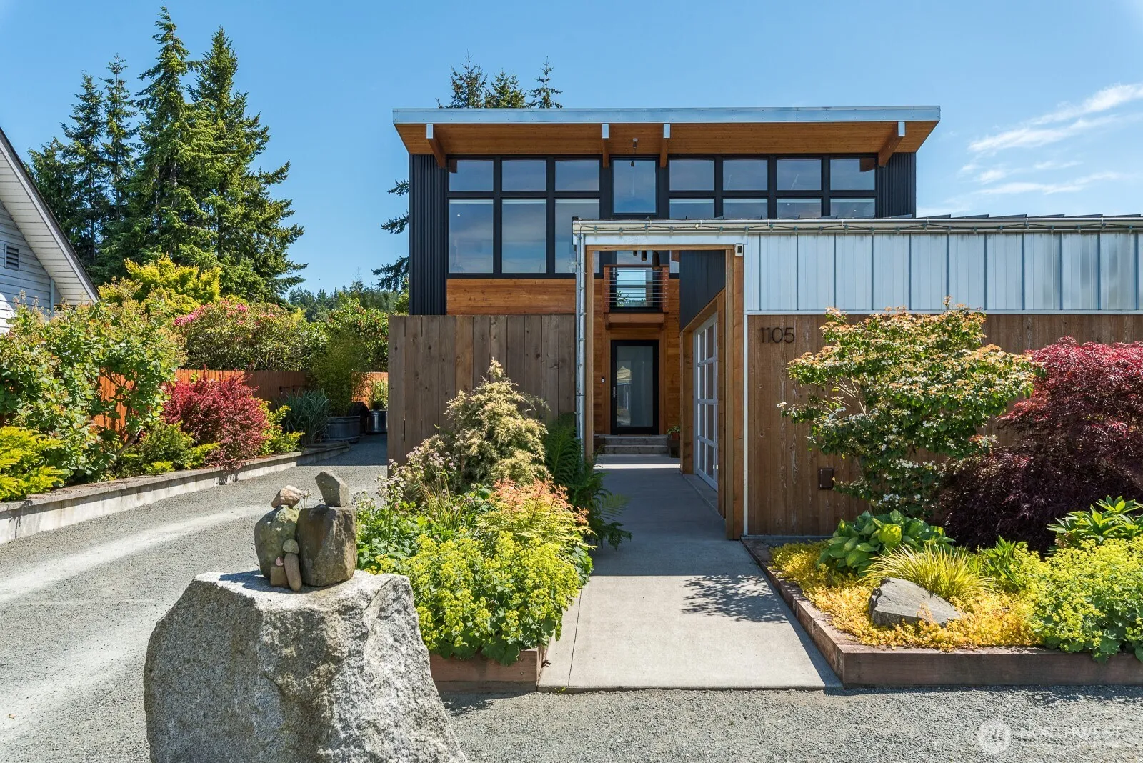 Expertly designed by an award-winning local architectural firm, this refined 3-bedroom home showcases timeless craftsmanship and intentional design. Rich with eco-conscious materials, including local timbers, knot shiplap inside and out & zero to low-VOC finishes, every detail reflects quality. Walls of windows capture sweeping territorial bay & mountain views, filling the open living spaces with natural light. Expansive open living layout with gourmet kitchen featuring custom cabinetry, quartz surfaces, grand island, dining area & seamless flow to the back deck down to lower yard. Outdoors, enjoy artfully curated landscaping, raised garden beds, lush lawn, paver patio & covered area perfect for relaxing or gathering plus detached garage.