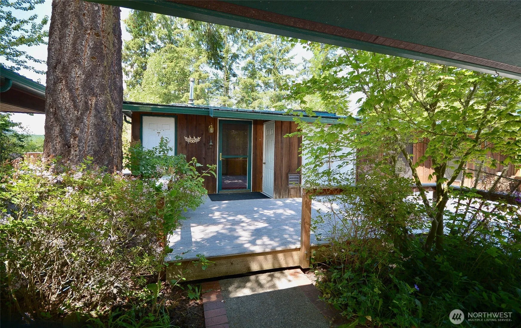 SWEAT EQUITY! 2 bedroom home plus studio apt. above detached shop. Rehab loan or cash only for this one. Perfect project home for profit or ez peaceful living with fruit trees, flowers, ponds, meadows and partial lake views! This charming and unique home features authentic wood floors, huge partially covered trex deck, outdoor kitchen, exterior 1/2 bath, perfect for outdoor entertaining! 2 propane and 1 wood stove, coy pond, dining room, kitchen island, radiant bathroom floor and jetted tub, living room, storage, generator, deck of primary bedroom, large carport and detached workshop with 2nd floor studio apartment complete with laundry, kitchen, living space/roof top deck views! Such a peaceful setting! Sq. footage includes ADU.