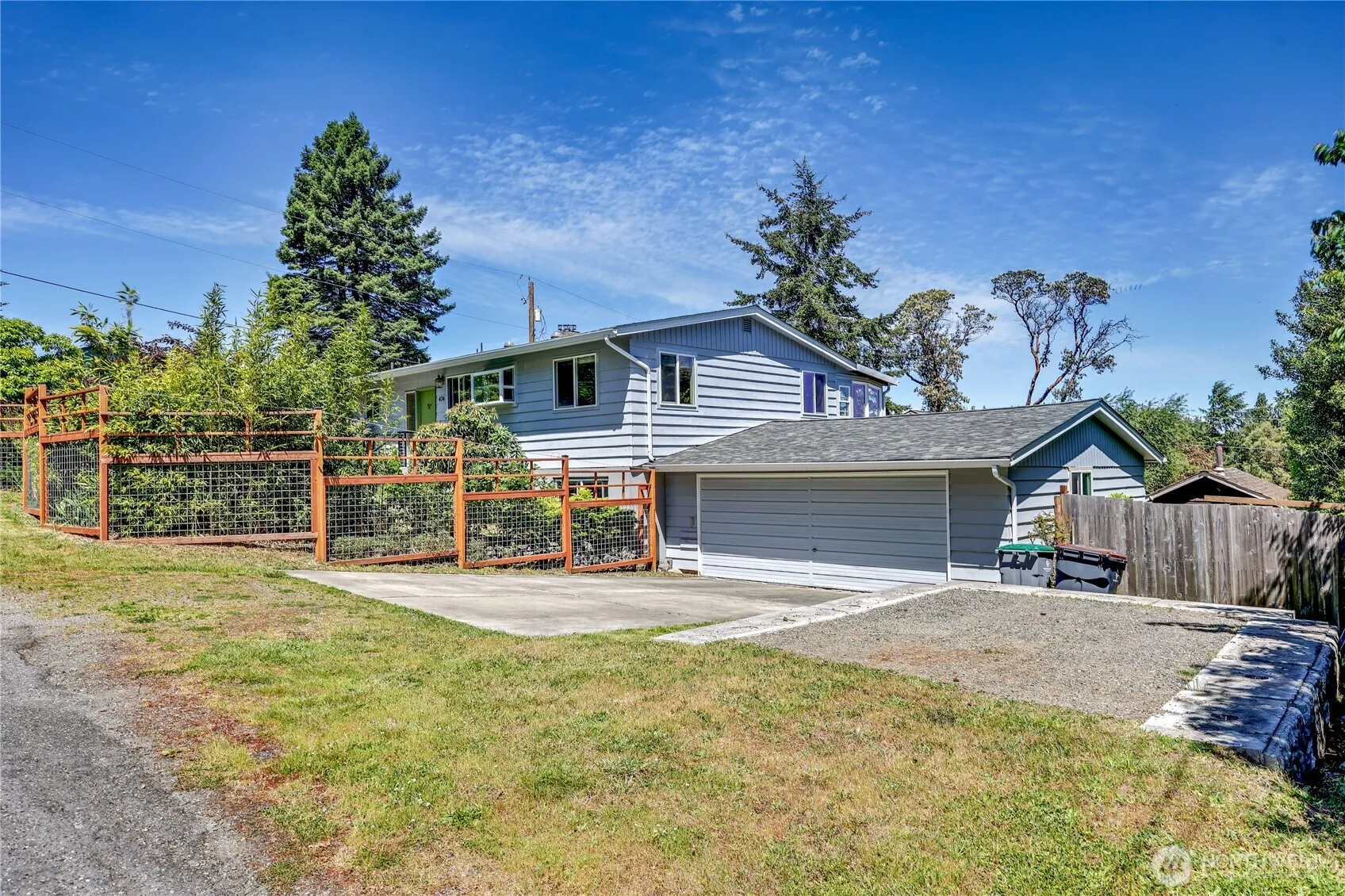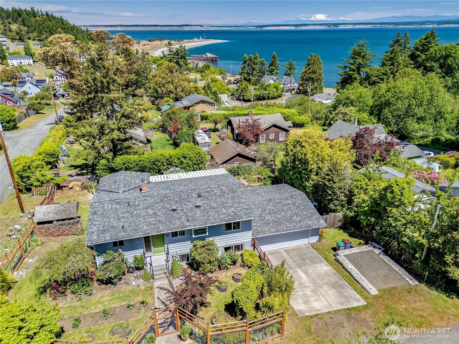 Mid-Century Modern view home, 3 blks from Fort Worden State Park & beach! Views of Point Wilson Lighthouse, shipping lanes, & Mount Baker from both levels. Beautiful oak flooring, large living room, large enough for office/TV area, fireplace insert. Completely enclosed view sunroom. New SS appliances in this sunny colorful kitchen, dining area opens to kitchen & living room. Primary bedroom has glass doors to sunroom & across the hall is main floor bathroom. Laminate & carpet in daylight lower level with a fireplace insert. Fully fenced yard in front & back, very quiet neighborly neighborhood, insulated, oversized, attached 2-car garage. Mature landscaping, green house, vegetable gardens, marionberries, raspberries & thornless blackberries