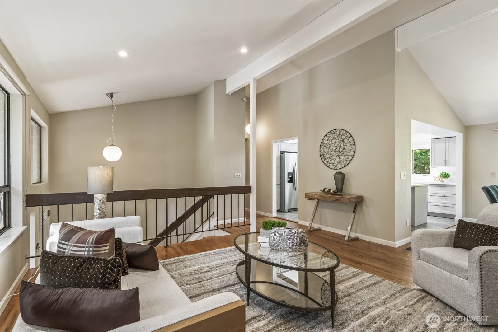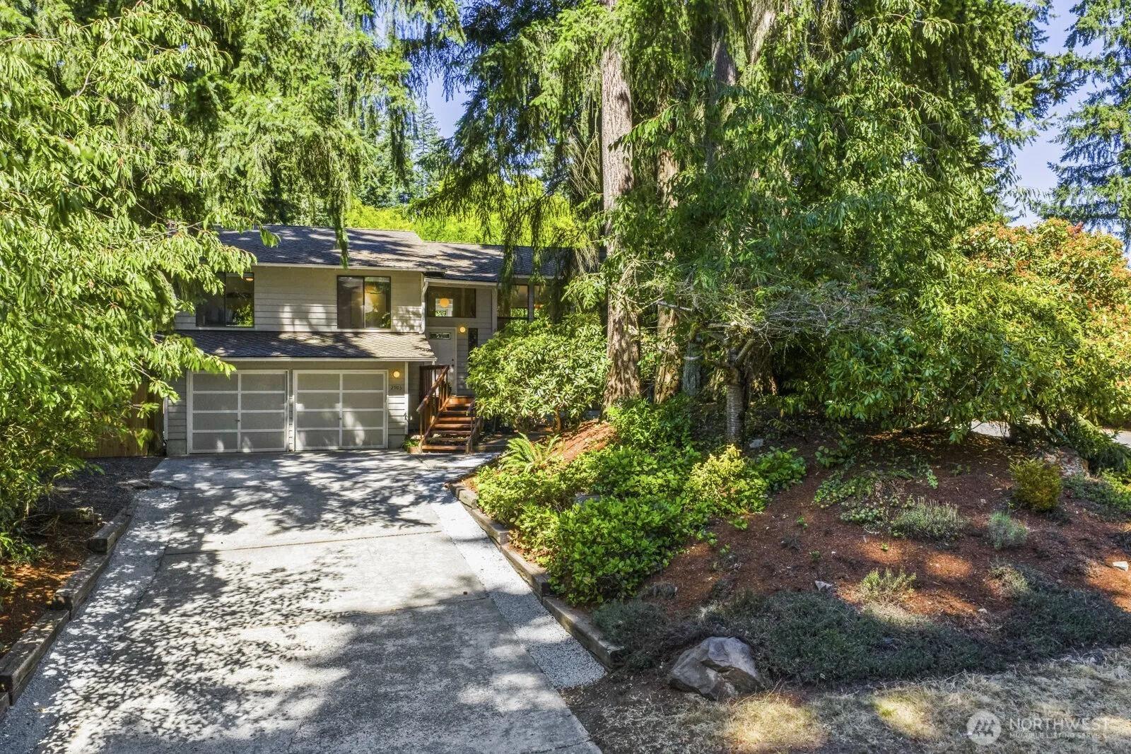 Spacious & updated 5 bed home on large, private, fenced lot is ideal for multi-gen living. This sun-drenched home features hardwood floors, cathedral ceilings, wood beams & skylights. New kitchen w/quartz island, loads of storage & under-cab lighting. Dining room opens to deck for EZ alfresco dining. Upstairs offers 4 bedrooms +2 updated baths. Primary suite has 2 closets & updated bath. Sunny lower level w/separate entrance includes full kitchen, tall ceilings, large bedroom, 3/4 bath, laundry & storage. Perfect for MIL. 2 fireplaces, AC, newer 50-year roof, RV/boat parking, oversized garage, storage sheds and fruit trees. Roaming Security. Fantastic location near top schools, Cherry Park, golf, swim, tennis clubs, Town Center & trails.