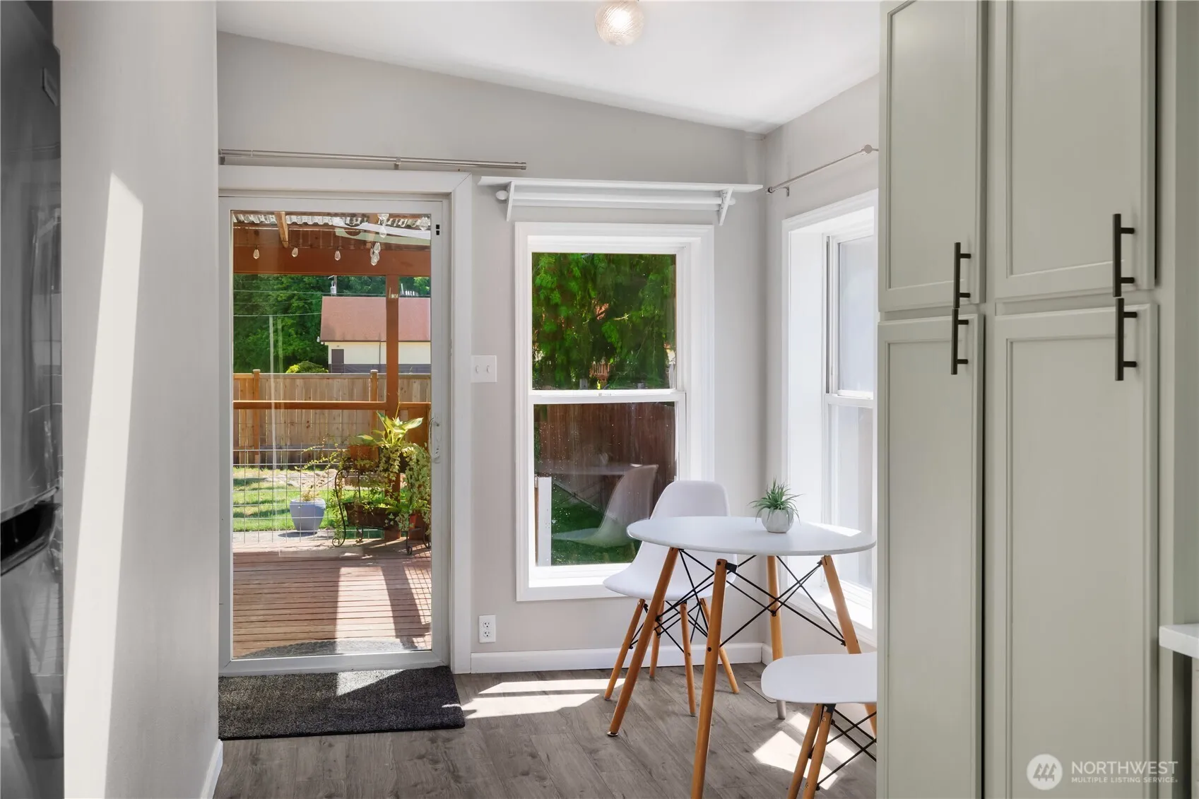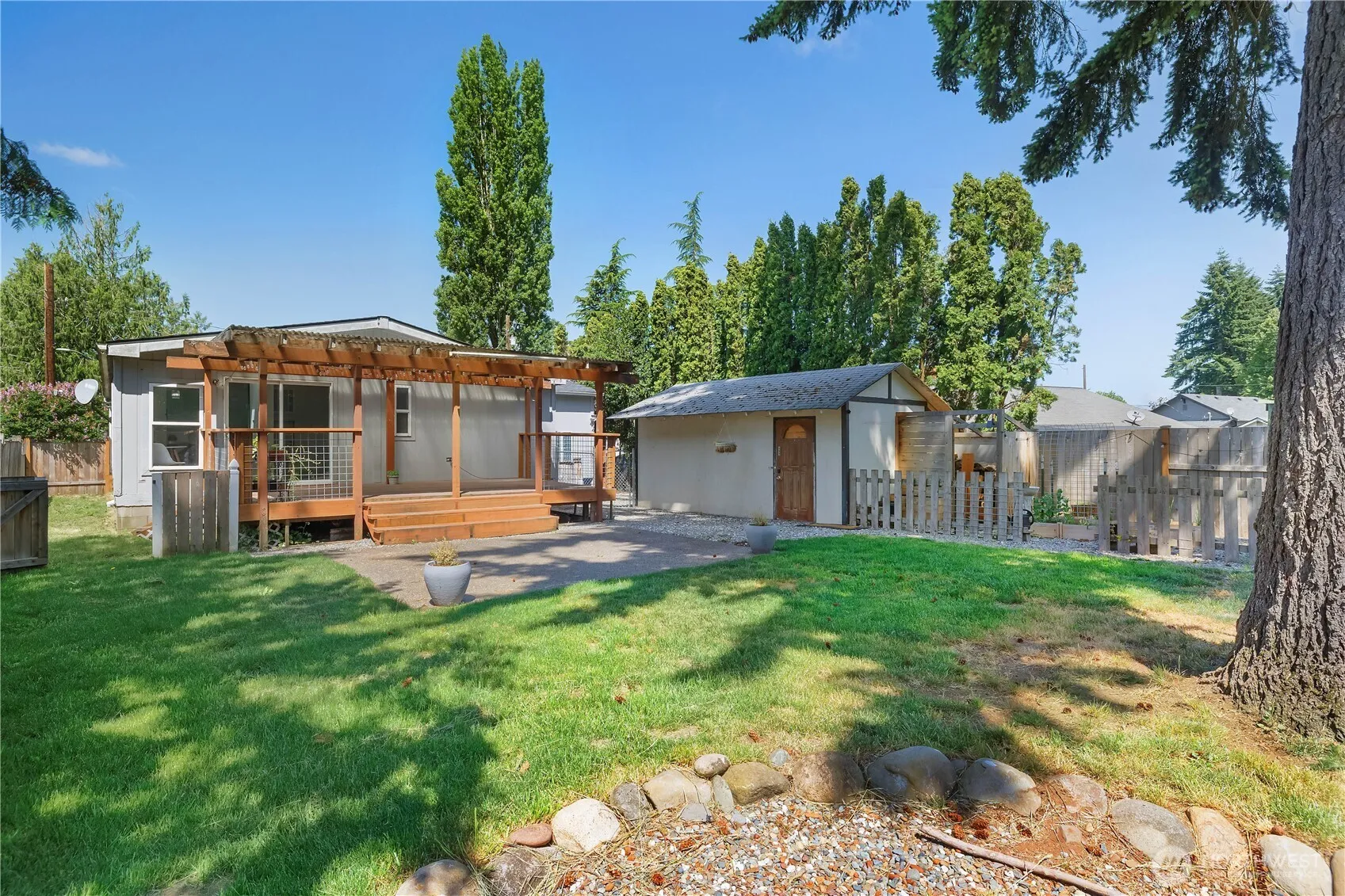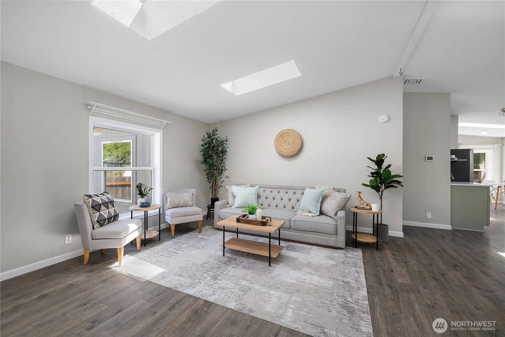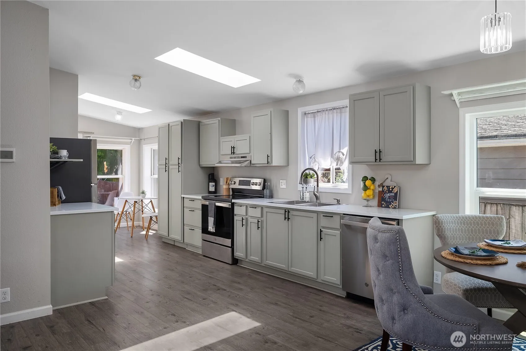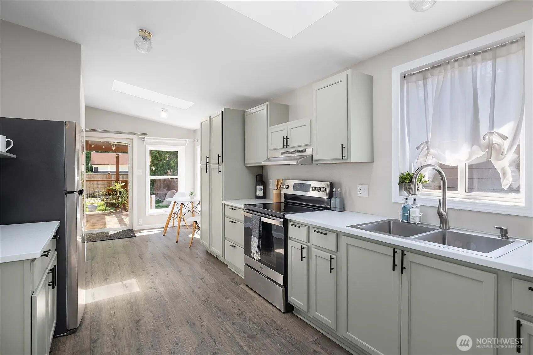 COMPLETE REMODEL IN 2023! New composite roof, LVP flooring and heat pump A/C! Stunning kitchen w/ new cabinets, coffee bar, stainless appliances & hood + a breakfast nook with tons of natural light on one side & dining room table space on the other! Updated electrical, plumbing, lighting, & bath fixtures. Primary suite w/ a dual-head, tiled walk-in shower + a connected bonus room perfect for a massive walk-in closet or make it a private office/hobby space. Four skylights flood the home with natural light. Outside, a fully fenced yard w/ covered wooden back porch & concrete landing pad, large workshop, & gated alley access—ideal for boat/RV storage by moving the raised garden beds. No HOA and move-in ready!