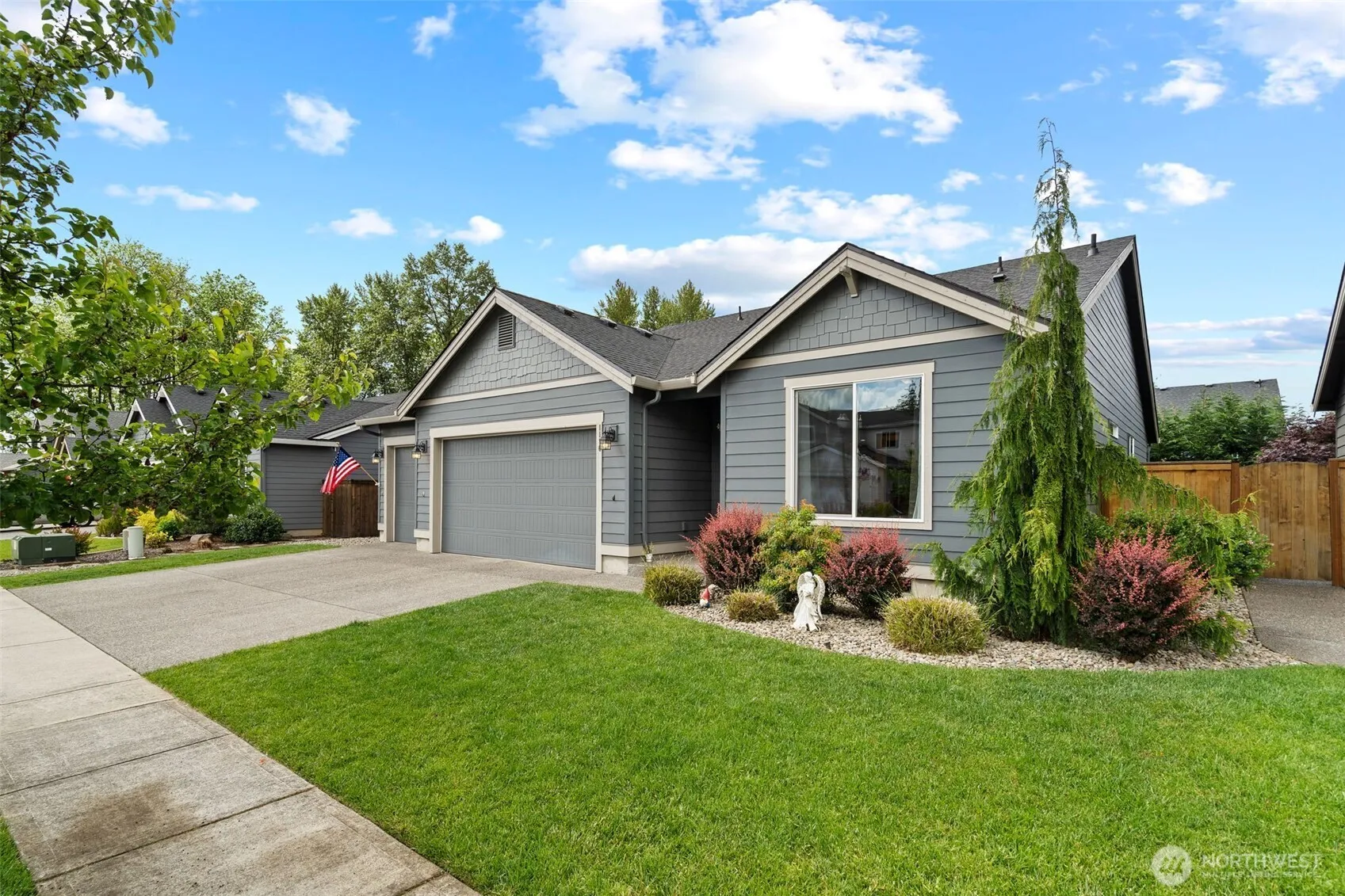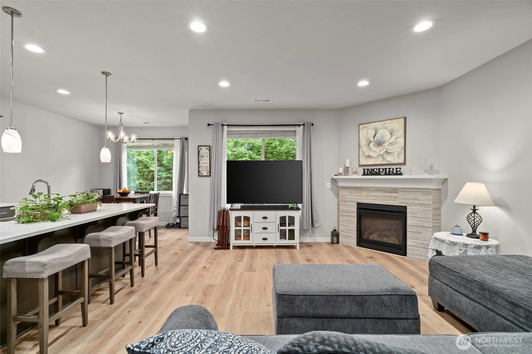 Welcome to this beautiful 3 bedroom, 2 bath home offering an open concept layout perfect for modern living and entertaining. Located in a desirable neighborhood with a community playground, this single story gem features new waterproof LVP flooring throughout, adding both style and durability. Step inside through a striking solid wood front door and enjoy the spacious great room with a cozy gas fireplace, ideal for gatherings. The kitchen is the heart of the home with a large island, ample counter space, and a layout that’s perfect for hosting. Retreat to the private primary suite, complete with a tiled walk in shower, a luxurious soaking tub, and a generous walk in closet. Two additional bedrooms offer flexibility for guests or hobbies.