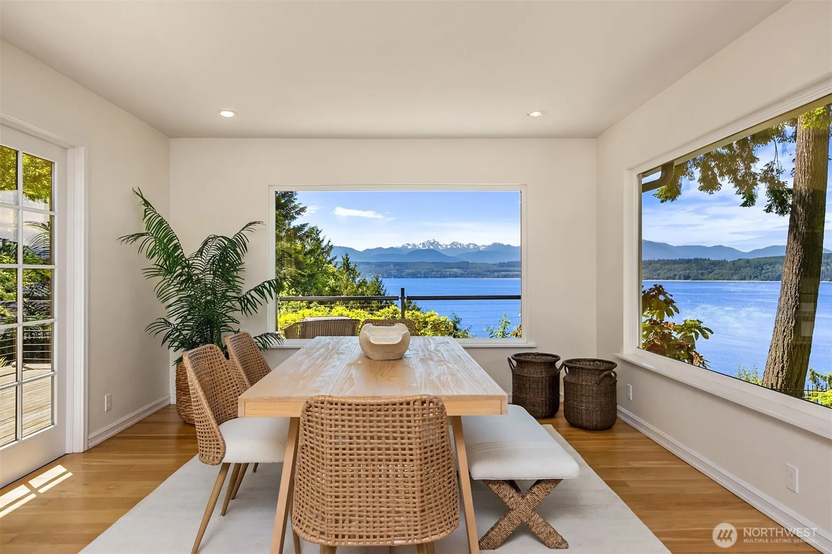 This exceptional and rare offering on magical Hood Canal consists of 3.94 acres spanning 2 tax parcels, a whopping 311 feet of beachfront w/ owned tidelands, & spectacular westerly views of the Olympic Mountains. A true sanctuary in every sense, welcome home to your very own waterfront park. A gated drive meanders through quiet old-growth forest and classic PNW grounds adorned w/ blooming rhododendrons & towering evergreens. Move-in-ready 2,100 sq ft home features a relaxed & cheerful interior w/ hardwood floors, stylish chef’s kitchen, & main-floor primary suite—all positioned to capture the sublime views. Walk a groomed trail to a sensational oyster and clam laden beach. 2 garages: 1 attached, 1 detached. Minutes to Poulsbo & Silverdale.