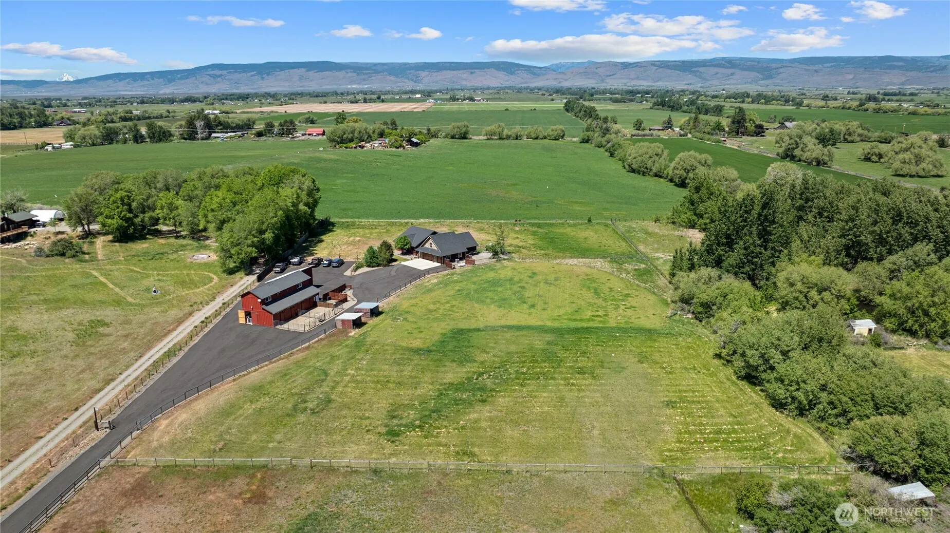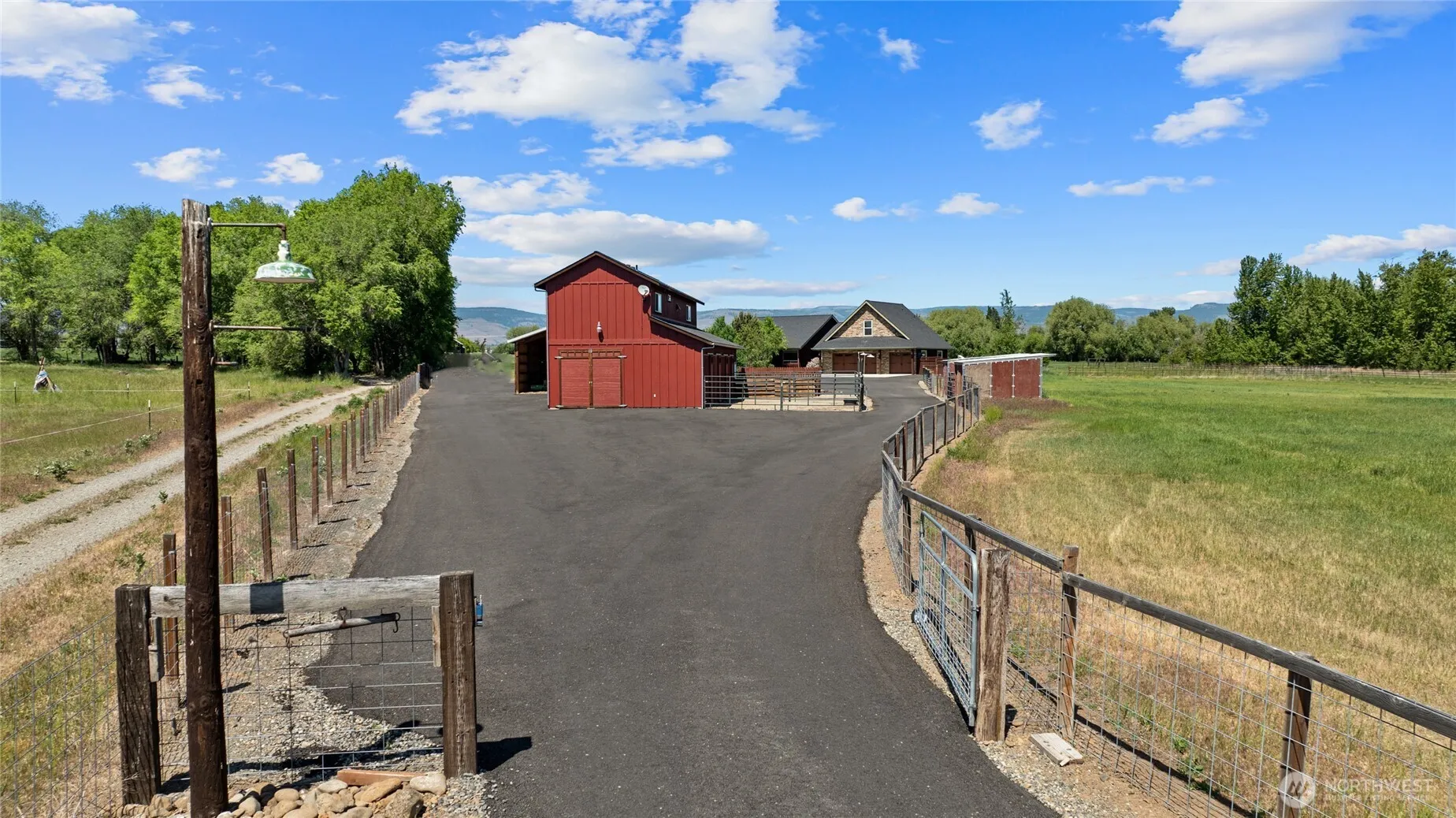 Welcome to 2853 Game Farm Rd! Gated & Secluded, down a long paved driveway, this 4-acre equestrian property is move in ready for you & your horses. On the approach, drive past the 4-stall BARN w/paddocks & irrigated pastures w/loafing sheds. Large area fully fenced for dogs. Income opportunity to rent the 864 SF 1 bed/1 bath APARTMENT w/full kitchen & W/D. Large hay storage/covered RV parking. HOME has open concept living/dining & kitchen area w/ custom knotty alder cabinetry & trim + acasia wood floors! Primary on the main floor & 2nd suite w/3/4 bath & large closet above the gar. Extend your living space w/the large patio w/louvered pergola w/wind screens, heaters & lights! Newer HVAC & upstairs flooring 2021. New exterior paint in 2022
