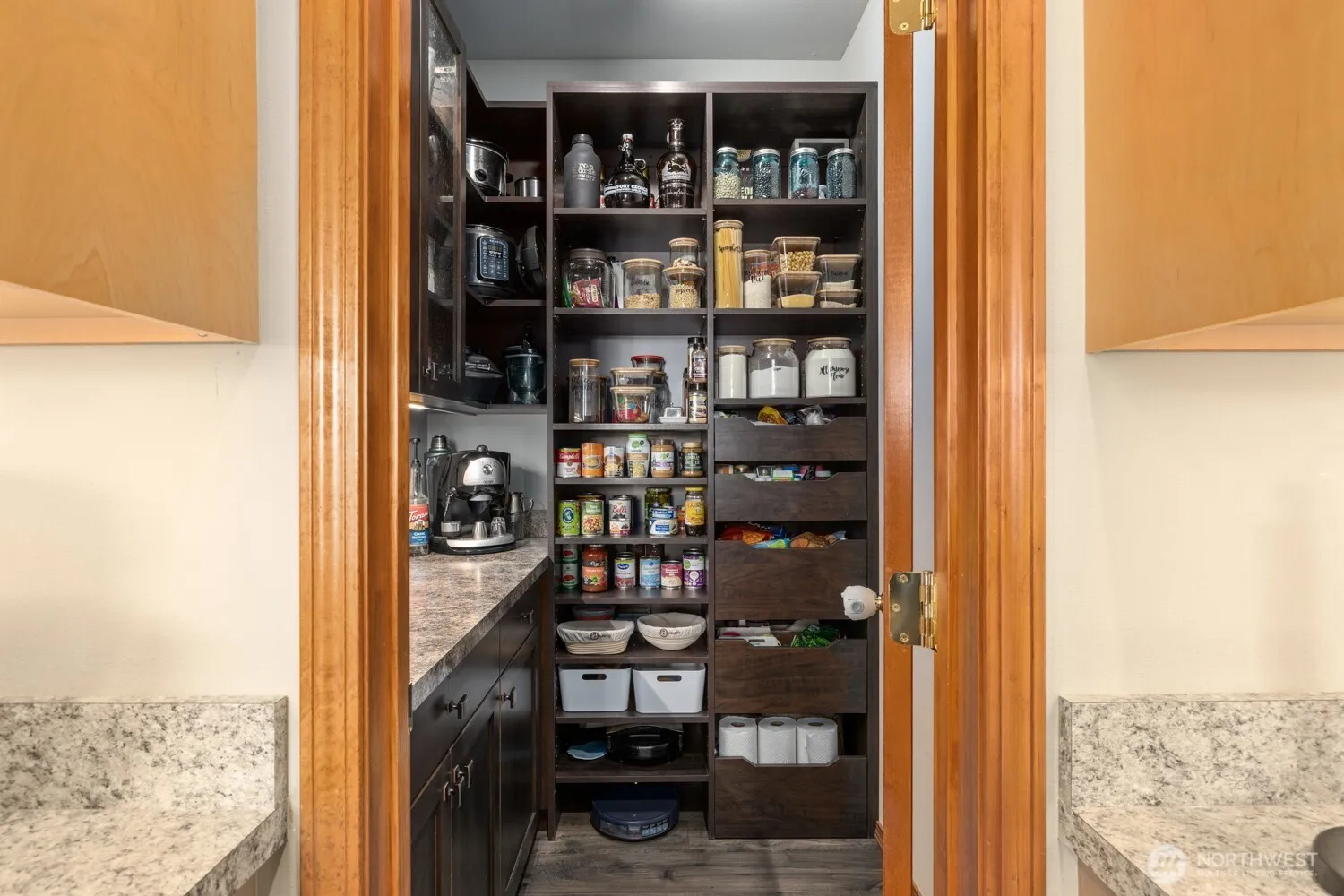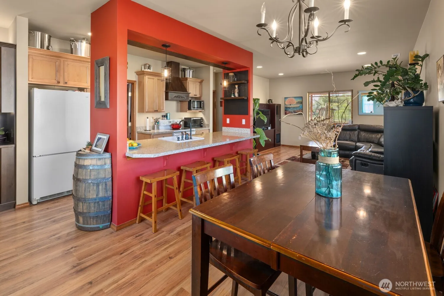 Looking for a unique location, but close to town? This 3 bed/3 bath 1710sqft home has great built-in custom cabinets throughout. You’ll love the open kitchen w/ breakfast bar as you host or prep meals, & amazing storage with a large walk-in pantry w/ prep bar! The primary is on the main w/ attached bath & separate access to the hot tub on the deck for a relaxing on a starry night. A 2nd bed. on the main w/ full guest bath. Upstairs is now used as an entertainment room, but could easily be used as a 3rd bedroom w/ another gorgeous 3/4 bath! The custom bar also has built-in humidor space for your cigars, home-brew, or proofing homemade bread! Sit on the paver patio or deck in the back yard & overlook the garden & view over the open field.