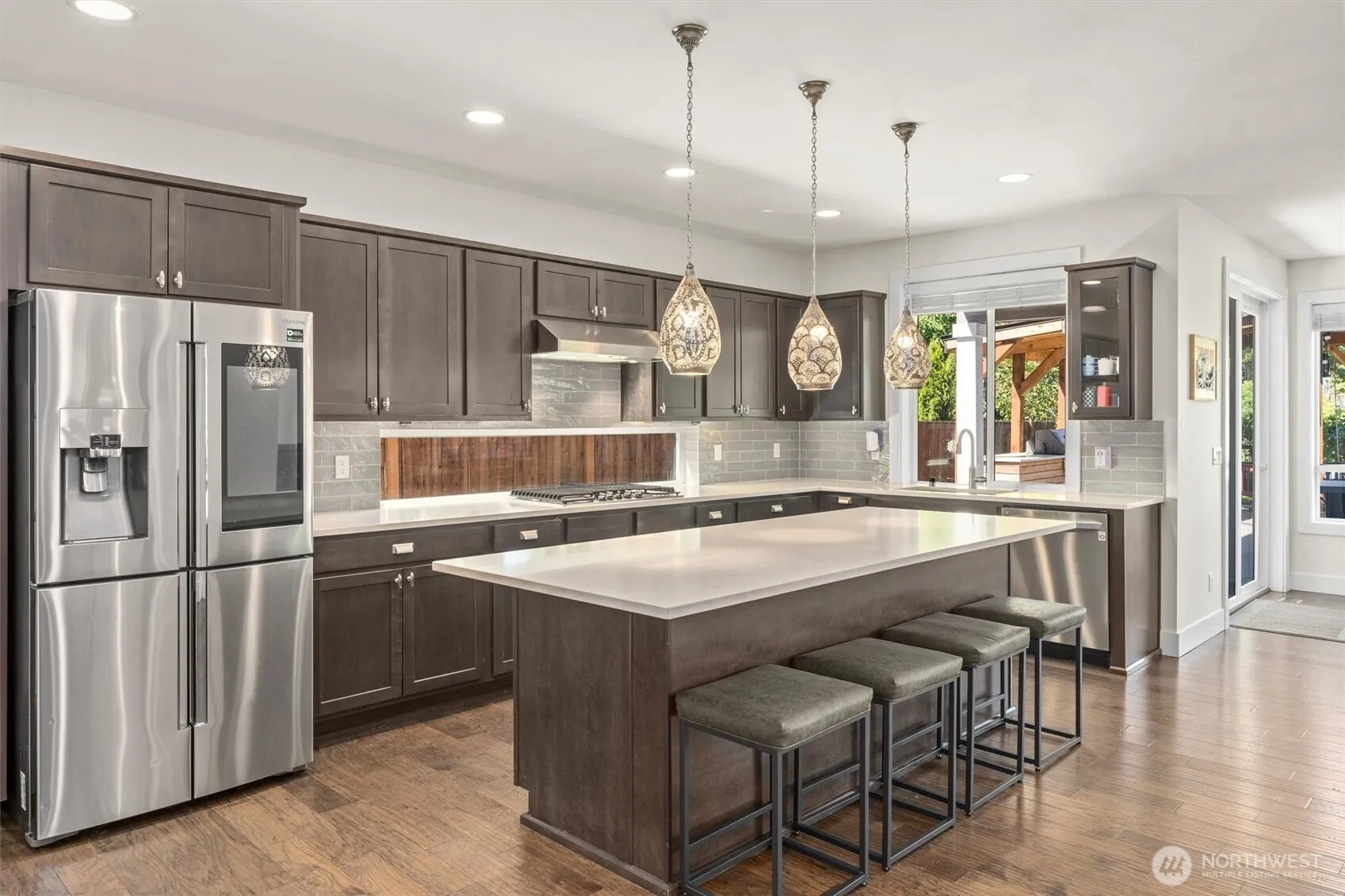 This stunning east-facing home has it all! Enjoy a backyard retreat with a basketball/pickleball court, swim spa, fire pit, heated gazebo, outdoor kitchen with built-in grill, large composite deck, and mature fruit trees—ideal for year-round entertaining. Inside are 5 bedrooms plus a bonus room (possible 6th), abundant natural light, and rich hardwoods throughout. The open-concept layout includes a chef’s kitchen with oversized island, quartz counters, stainless appliances, walk-in pantry, and gas cooktop. A main-floor bedroom with ¾ bath adds flexibility. The primary suite offers a 5-piece bath and walk-in closet. Includes 3-car garage, A/C, and the nearby Snoqualmie Valley Trail. Easy access to the Tolt River, I-90 and more!