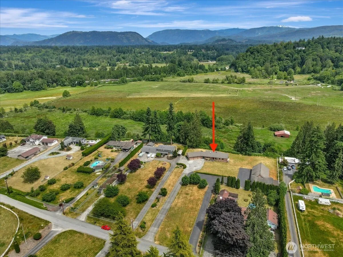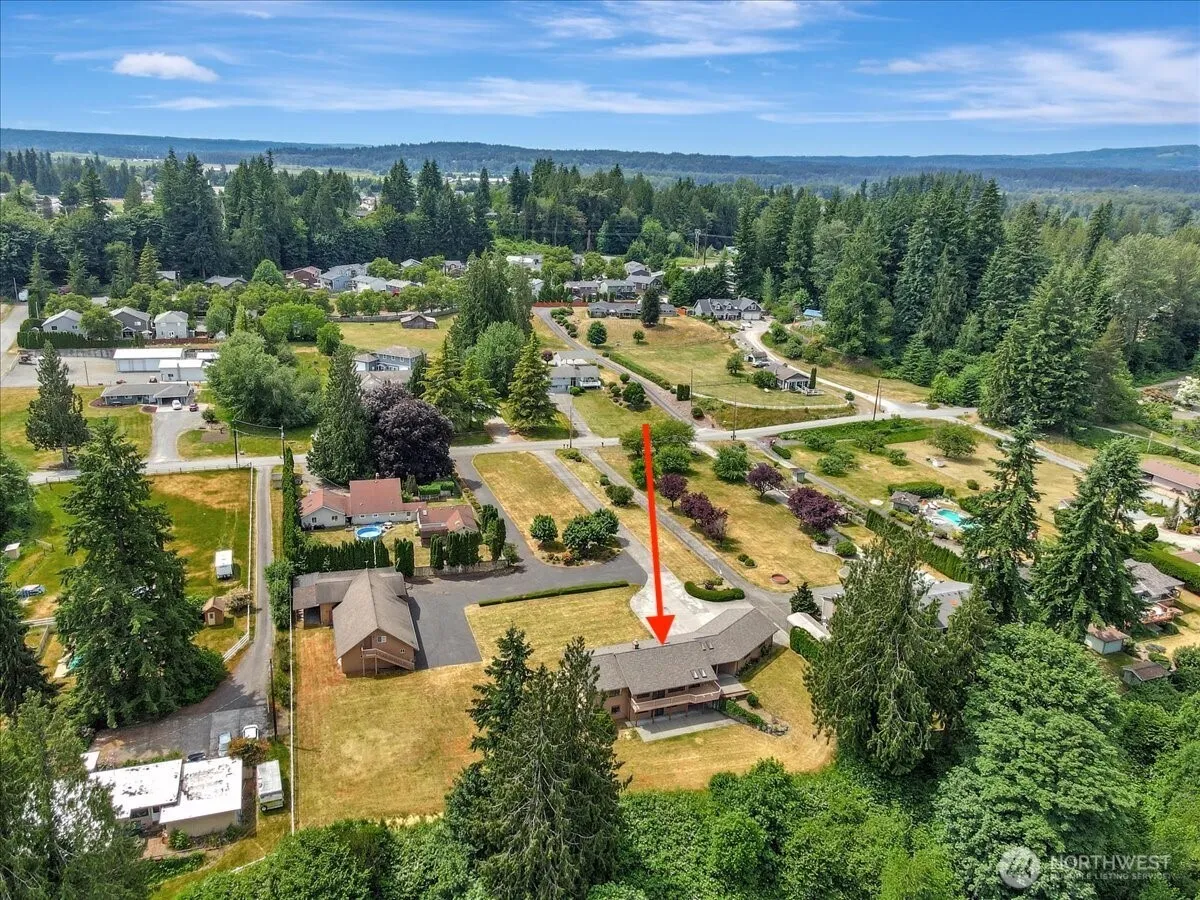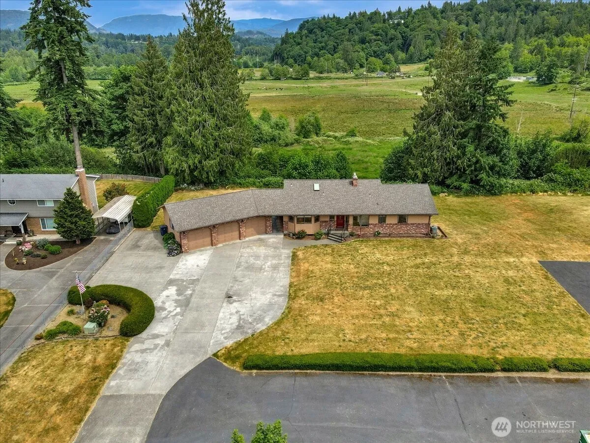 Breathtaking Easterly views and acreage within walking distance to town and local schools. Enjoy mountain views from nearly every room on a quiet, private, dead-end street. Spacious living room with cozy brick gas fireplace and formal dining. Large master suite with walk-in closet, four additional bedrooms downstairs, family room with gas fireplace, and 3-bay attached garage. Detached garage offers 3,200 sq. ft. HEATED space with half bath, office, Two-car bay, RV bay, and upstairs bonus area, all on separate power from home. TONS of parking, 7-year-old roof, no HOA. Pre-Inspection available upon request, Well & Septic inspections completed Mar./Apr.2025. New H2O tanks June 2025, HVAC Inspected June 2025. Come and see for yourself!
