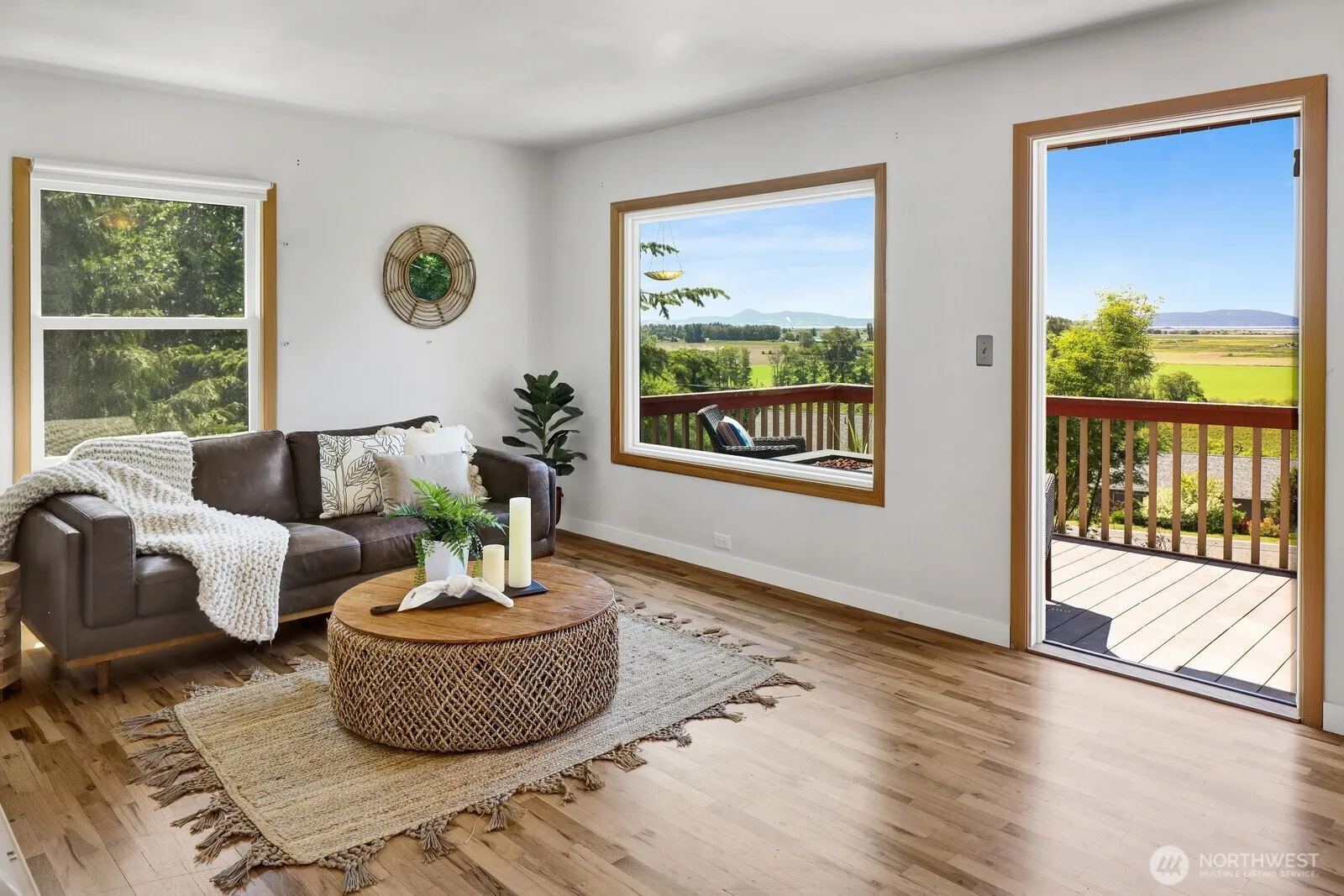 Enjoy breathtaking views of Samish Bay, the San Juan Islands, and the Skagit Valley from this 1.79-acre property in a peaceful, private corner of sought-after Bow. This charming bungalow blends vintage character with modern comfort—original hardwood floors, built-ins, and a quaint kitchen are complemented by a fully finished lower level and a new ductless mini-split for efficient heat and A/C. The expansive new primary suite is a true retreat, featuring a spa-like bath with a walk-in shower, elegant soaker tub, and designer finishes. Step onto the deck and take in world-class views—perfect for morning coffee, birdwatching, and quiet reflection. A rare offering with unforgettable scenery.