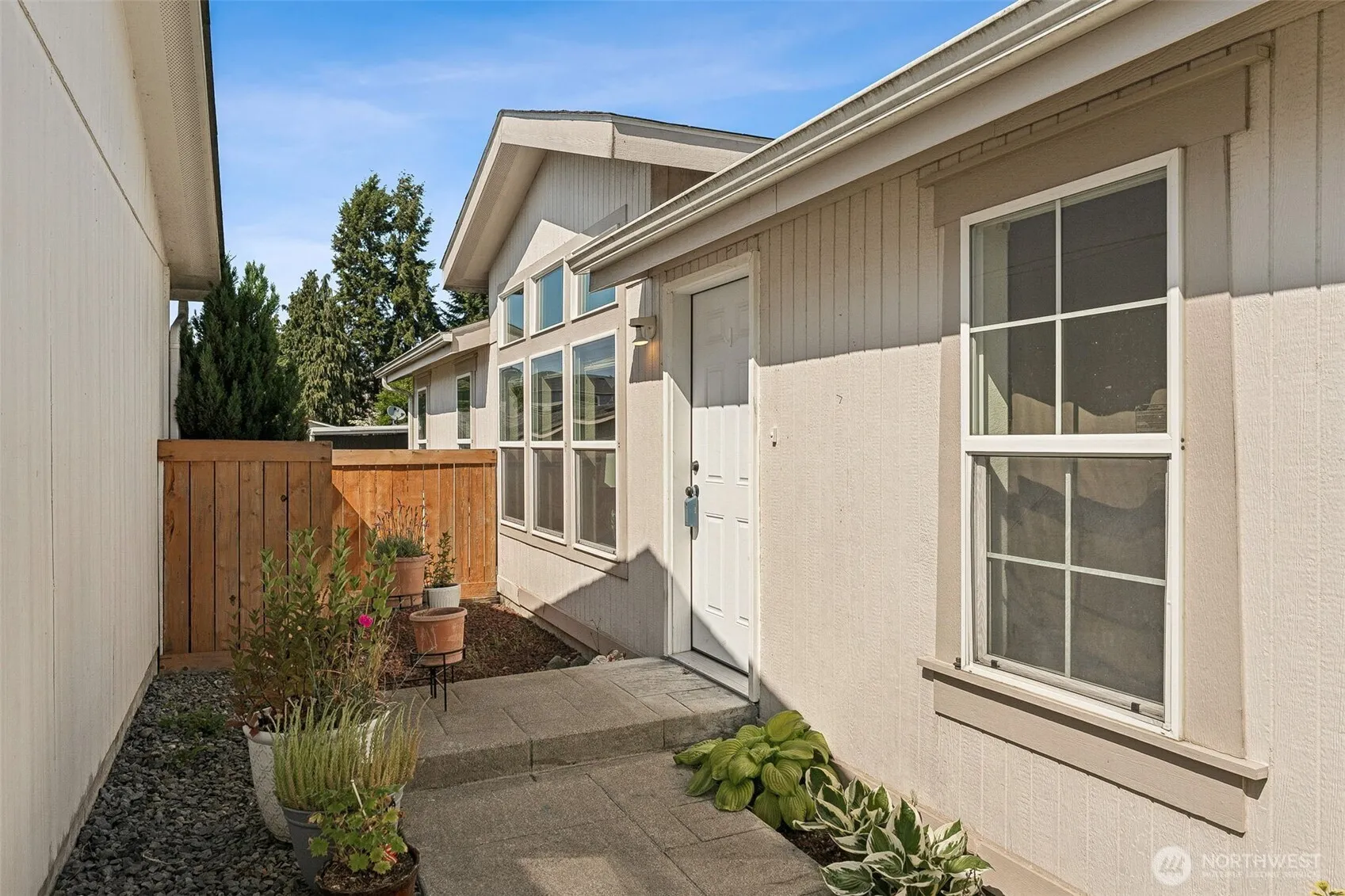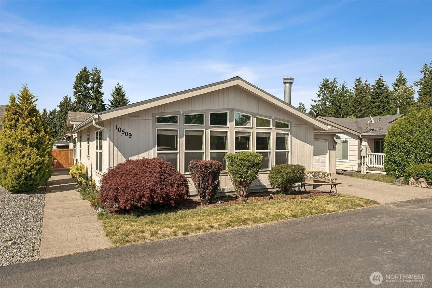 Don’t miss this move-in ready 1,820 sq ft home on its own land w/ no space rent! Light & bright floor plan featuring 2 bedrooms, 2 bathrooms + den/office. Living area updated w/ laminate hardwood. Generous size kitchen w/ center island, tons of cabinet space, pantry & stainless appliances. Plenty of room to spread out in the family room w/ vaulted ceilings, tons of natural light, wood-burning fireplace & built-in desk/office area. Spacious primary suite features 2 walk-in closets & private 5-pc bathroom including walk-in soaking tub. Enjoy the heat pump for year-round comfort w/ AC. Attached garage heated & cooled w/ Mitsubishi minisplit. Safe in garage stays. Enjoy summers in your fully fenced backyard w/ composite deck + addl storage.