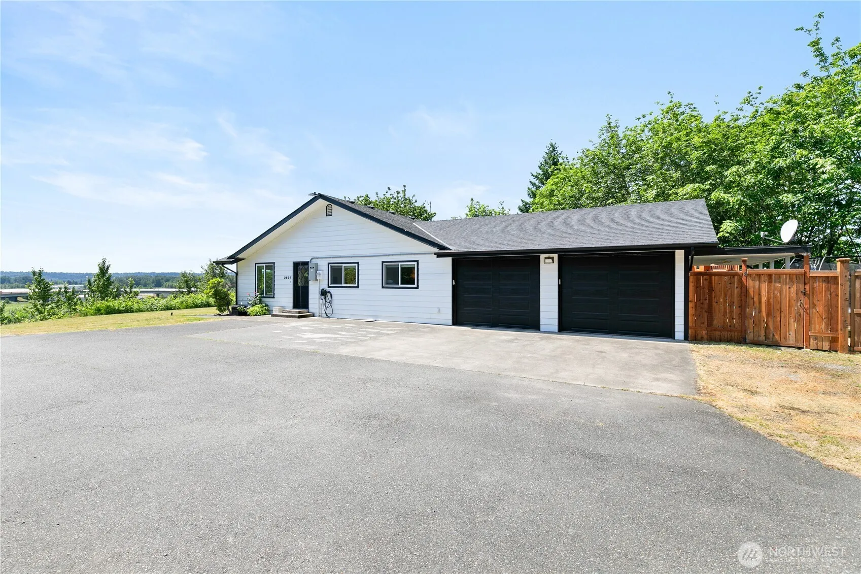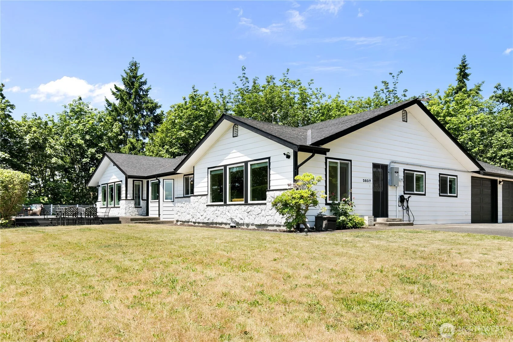 Exquisite 2,482 sq ft Modern Retreat with Mt. Rainier Views! This fully updated 3-bedroom, 1.75-bath home radiates contemporary elegance on over 3 acres of serene land. Revel in the open-concept design, featuring a gourmet kitchen with pristine white cabinetry and brand-new stainless steel appliances. The stunning built-in entertainment center serves as the heart of the living space, perfect for gatherings. Both bathrooms are beautifully renovated, complementing the home’s fresh exterior paint, and brand new windows throughout. This property includes an EV car charger, generator and RV parking with a 50 amp RV hookup. Home zoned mixed use -1, inquire with the city of Edgewood.