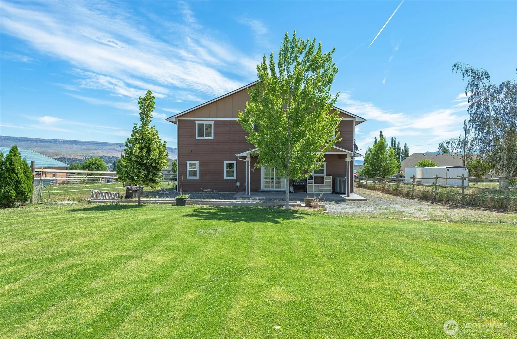 This spacious & well cared for home is a must see! Enter through the large living area with 18 foot ceilings & plenty of natural light. The kitchen features stainless steel appliances, granite countertops, a breakfast bar, pantry space, as well as plenty of storage. Adjacent to the kitchen you will find the first primary suite with an attached full bath and double closets. Upstairs features a large family room, full bathroom, two spacious bedrooms, as well as a second primary suite w/ attached bath. Enjoy stunning views of Saddlerock right from your covered back patio, sitting on almost half an acre. Two car garage, RV parking, and an irrigated lot with space for an ADU and even farm animals!