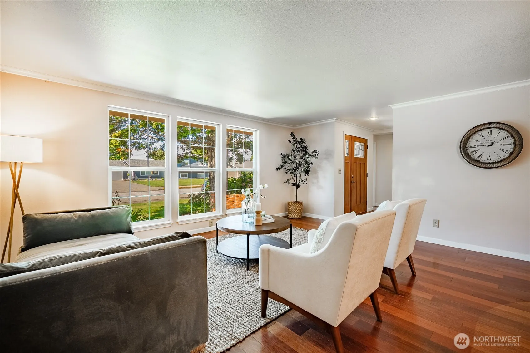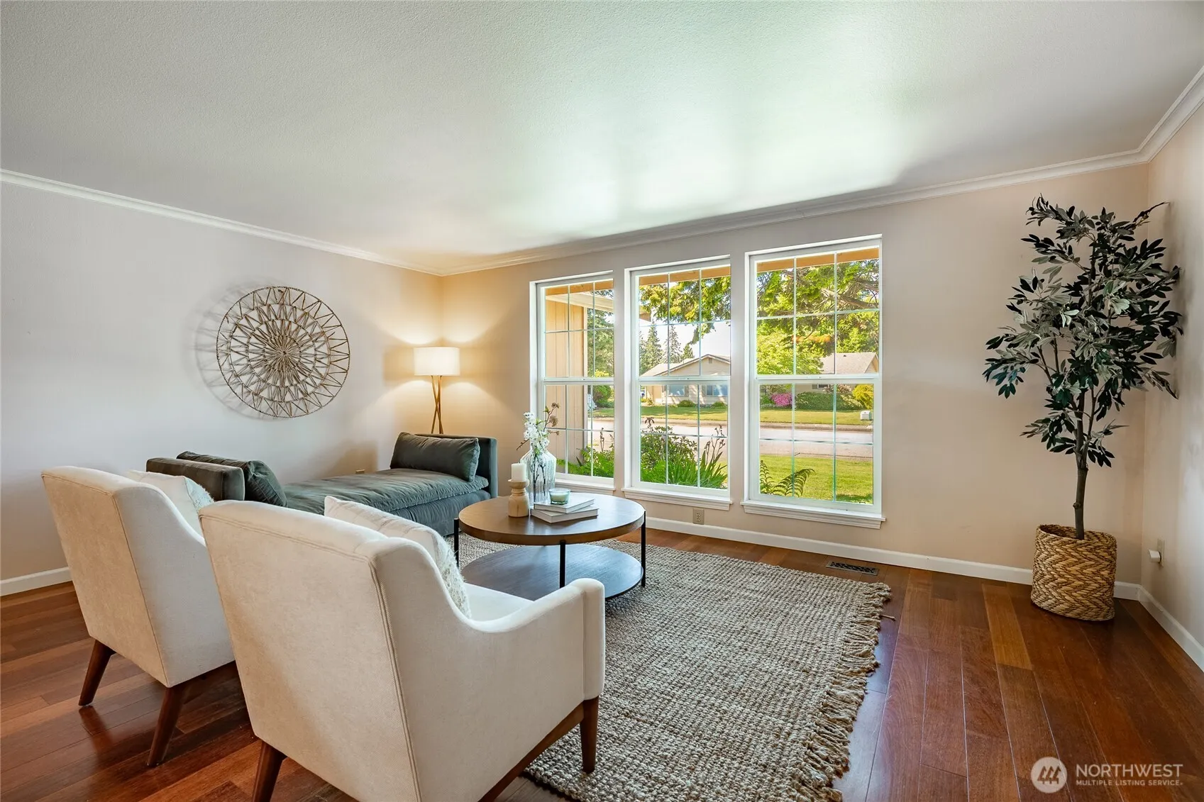 Spacious single-story 4 bedroom, 2 bath home on large 1/4 acre lot in well-established Lynden neighborhood near schools, parks and walking trails. Private primary bedroom and bath at one end of home and 3 bedrooms and bath on the other. Large kitchen with granite countertops, island, pantry and breakfast nook. Living room is open to dining and family room with wood fireplace is located off the kitchen with access to a 2-car garage and great outdoor living space with Trex deck, gazebo, fruit trees and outbuilding. Partially fenced yard and A/C!
