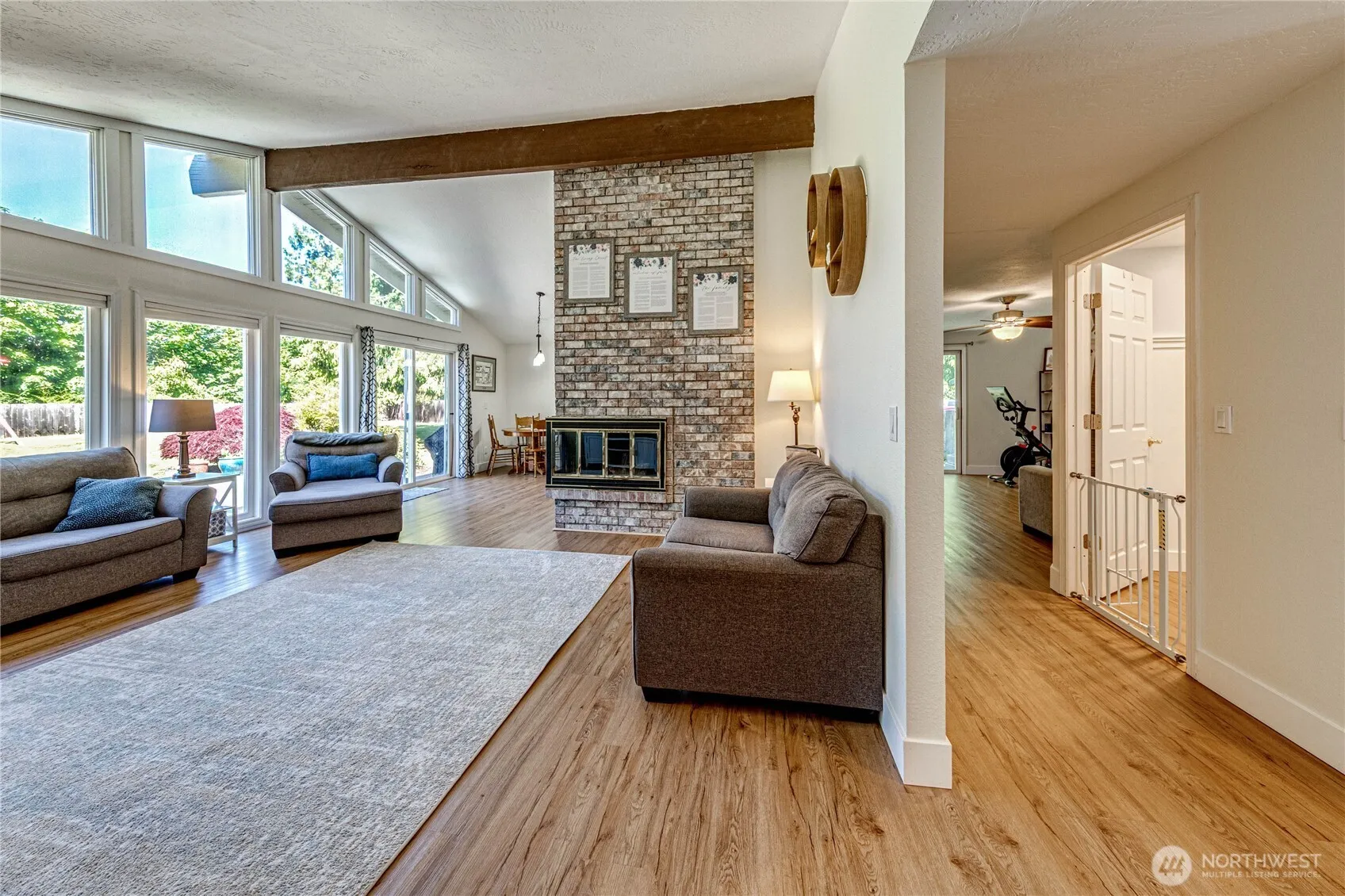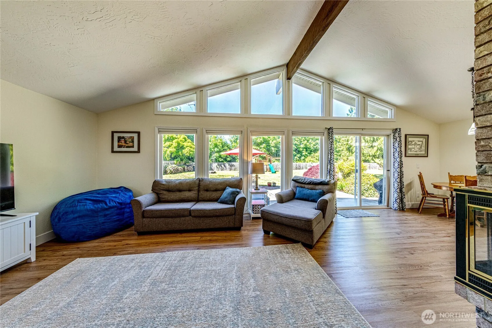 Northwest contemporary 3BR 2BA home with a good mix of traditional & modern elements. Situated on nearly three quarters of an acre in a quiet county neighborhood, you’ll appreciate the house being situated with ample front & back yards. Tons of parking, including almost 700sf of covered concrete, storage rooms, covered porch, fenced private backyard with patio, firepit, play structure, flat lawn & natural shrubbery. Inside you’ll be “wowed” by the vaulted ceilings, wood beam, stone fireplace & floor to ceiling windows. Two living rooms provide space to sprawl! Totally remodeled kitchen & bathrooms with custom cabinetry, tile, shiplap & quartz counters. Vinyl plank flooring, craftsman trim & wainscot, matte farmhouse fixtures & so much more!