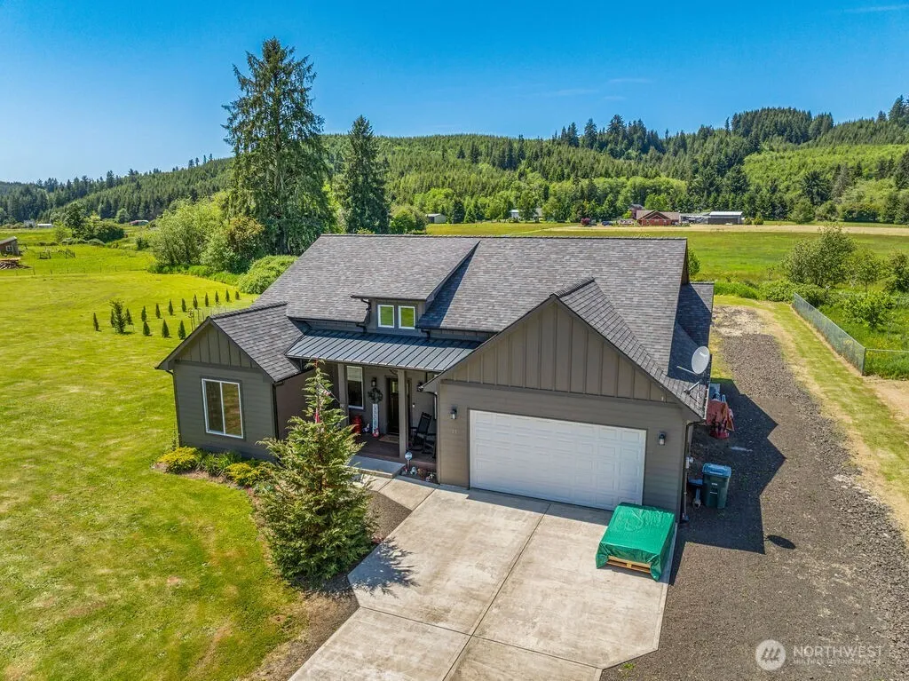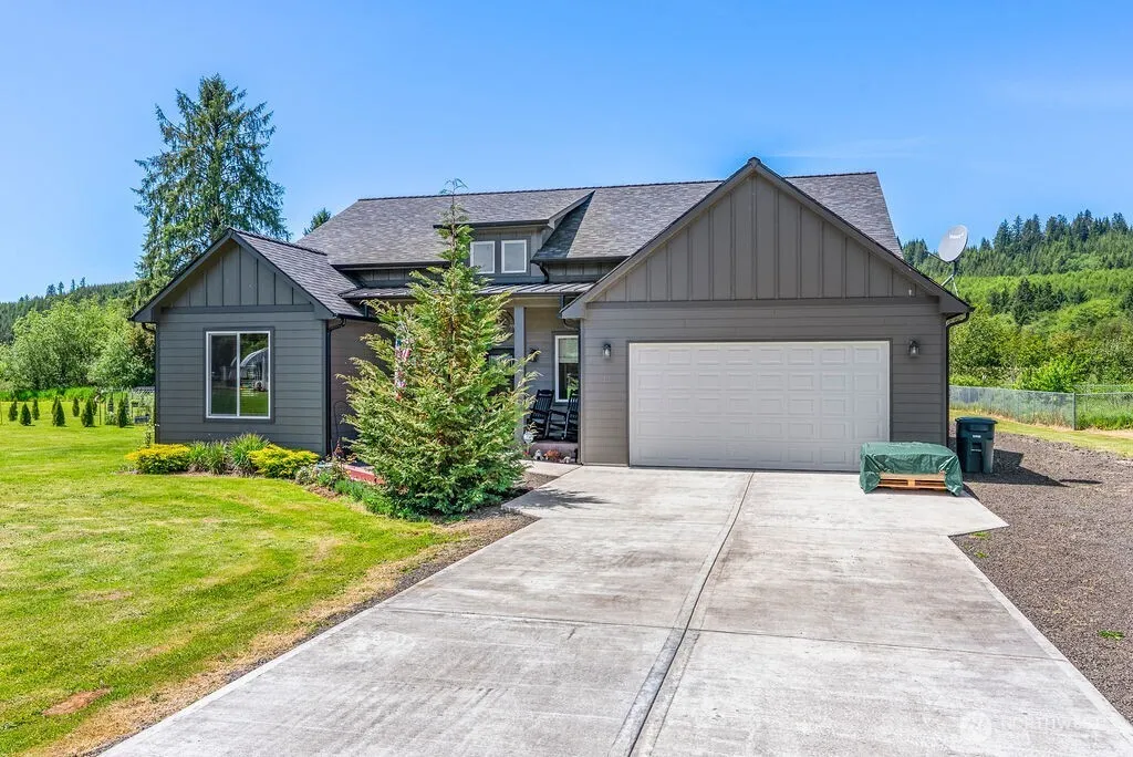 Head out Elochoman Valley to peaceful, newer construction neighborhood of Nature Loop. Home completed in 2021 w/lots of bells & whistles! Split floor plan (3 BR/2 BA), open concept living of 1824 sq ft feels much larger. With bright 2-story foyer, 9′ & vaulted ceilings, the already spacious rooms seemingly soar. Enjoy quartz countertops, beautiful solid surface flooring, tiled in showers, custom barn doors, stainless appliance package & amazing ISLAND! EZ Care Trex decking on front & back, efficient dimming/motion lighting, brand new heating/cooling system, full home water filtration, well & septic for low-cost utilities plus an acre to enjoy gardening, relaxing & listening to the sounds of nature, future shop space is rocked & ready to go!