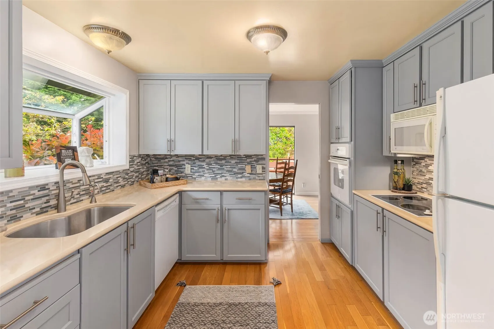 Welcome! This charming, inviting home extends a warm sense of arrival. Light-filled 3BR/3BA layout features a spacious living rm w/large windows framing peaceful green territorial views. Dining area off kitchen opens to a spacious deck—ideal for afternoon sun & vibrant sunsets! Lower lvl offers a rec rm & direct yard access, w/a flexible bonus space ideal for home office/gym/hobbies. Full bathroom & large utility rm complete the lower lvl. Beautifully landscaped corner lot is filled w/mature plantings & seasonal color w/ample room to play/garden. Located a block from downtown MI, w/easy access to Sunday Farmers Market & summer concerts at Mercerdale Park. Surprisingly private, yet close to everything, this is a place to truly feel at home.