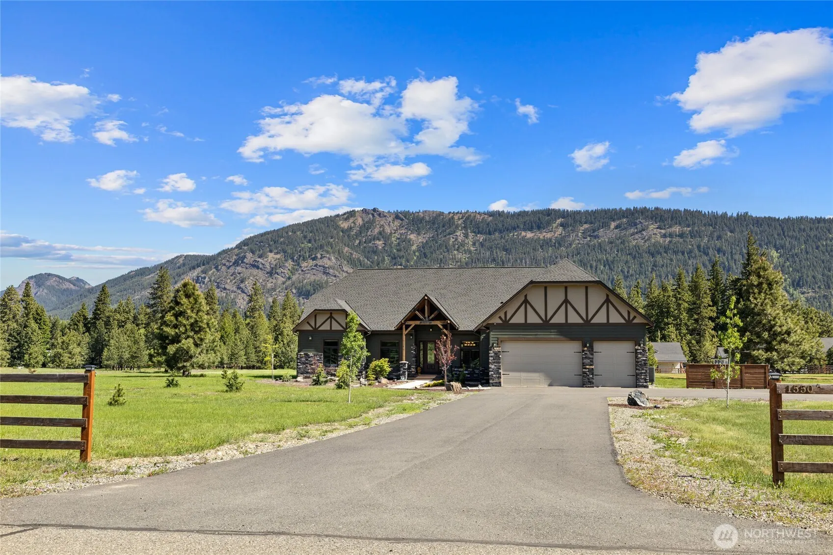Discover timeless elegance in this luxury Tudor home. Situated on 3 pristine acres in the gated community of Coyote Creek, this single-level estate features vaulted ceilings, a spacious open-concept great room, a chef’s kitchen w/ an oversized island, high-end appliances, & custom tile. Expansive windows fill the home w/ bountiful light & frame stunning mountain views. Relax on the covered porch & where tranquility & abundance abound. Enjoy extra comfort w/ the high-efficiency HVAC & a commercial-size water heater. The generous primary suite offers a peaceful retreat w/ a luxurious five-piece ensuite bath w/ spa soaking tub. Easy access to downtown Cle Elum, hiking, shopping & dining completes this exceptional home & mountain lifestyle.