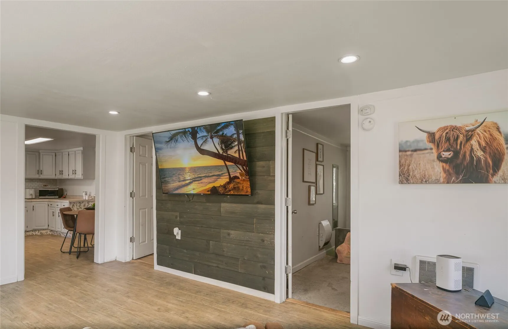 Charming Updated Rambler on Spacious Lot. This beautifully updated rambler sits on a large, level lot with mature landscaping and full fencing—perfect for privacy and versatility. There’s plenty of space for RV parking, multiple vehicles, or even a garden. The interior offers a seamless flow from the living room to the dining area and kitchen, ideal for everyday living and entertaining. Highlights include a stylish accent wall in the living room, a modern color palette throughout, and a light-filled kitchen featuring white cabinetry, a classic subway tile backsplash, stainless steel appliances, and durable vinyl flooring. Bonuses include storage shed and metal roof. Conveniently located near town, parks, schools, and shopping.