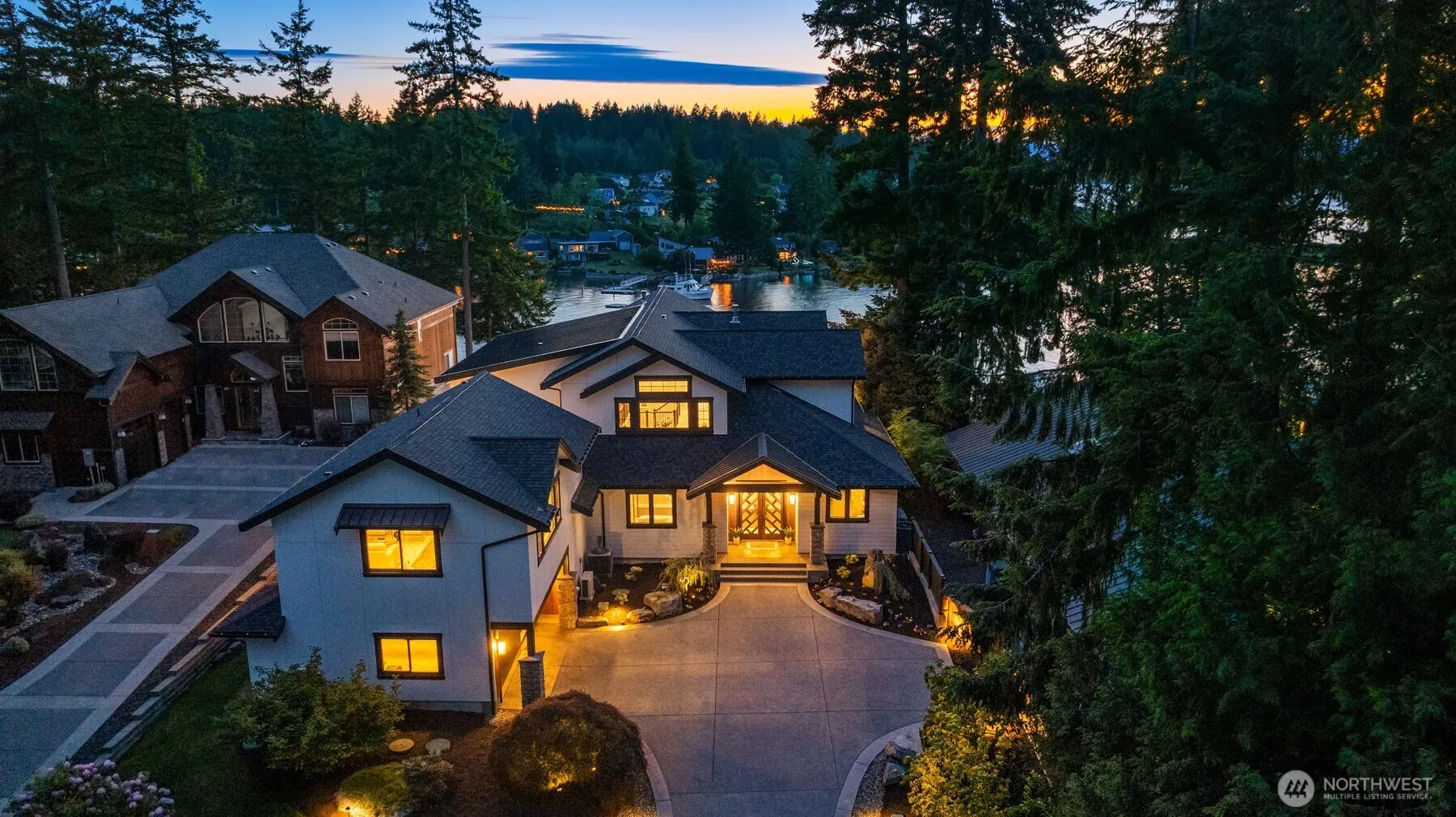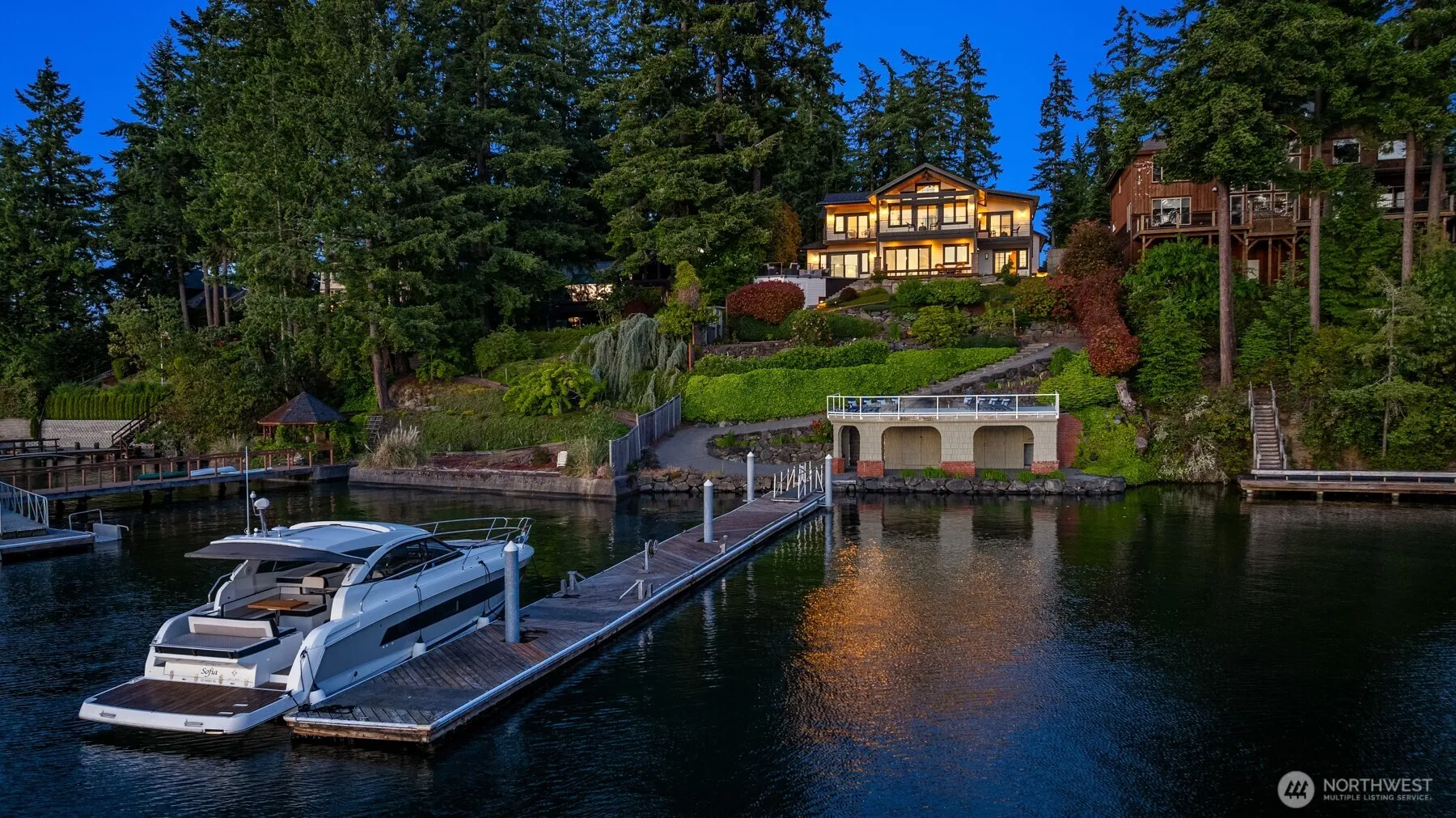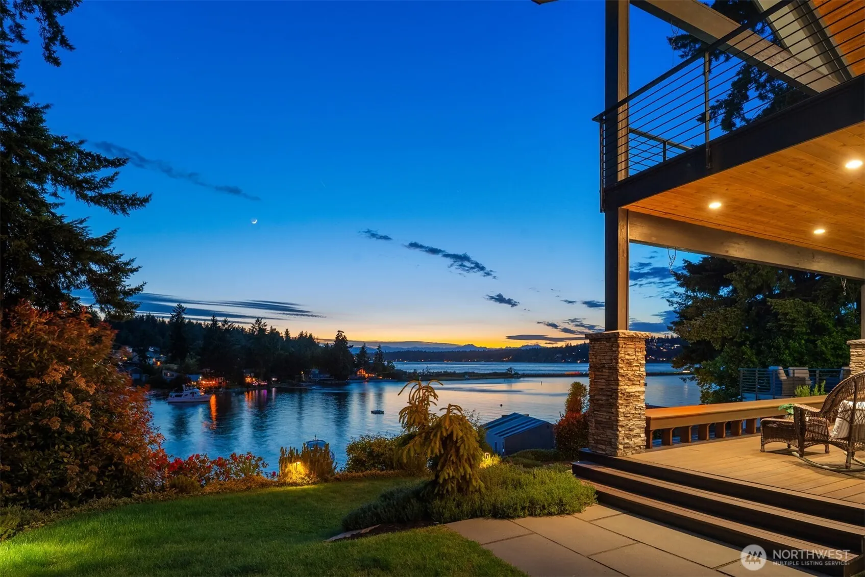 A once-in-a-lifetime opportunity on Fox Island’s Honeymoon Bay. This custom 5,500+ sq ft waterfront estate offers sweeping west-facing views, stunning sunsets, and a backdrop of the Olympic Mountains. A 100-ft deep-water dock provides year-round moorage for two boats or yachts. Every oversized bedroom is a private retreat with its own en suite bath, walk-in closet, and private deck. The open-concept kitchen, dining, and living areas flow effortlessly to outdoor entertaining spaces. A separate Guest Suite or MIL over the garage adds flexibility for guests or multigenerational living. Elevator access, gated entry, vibrant year-round landscaping, and ample parking complete this exceptional legacy property designed for generations to come.