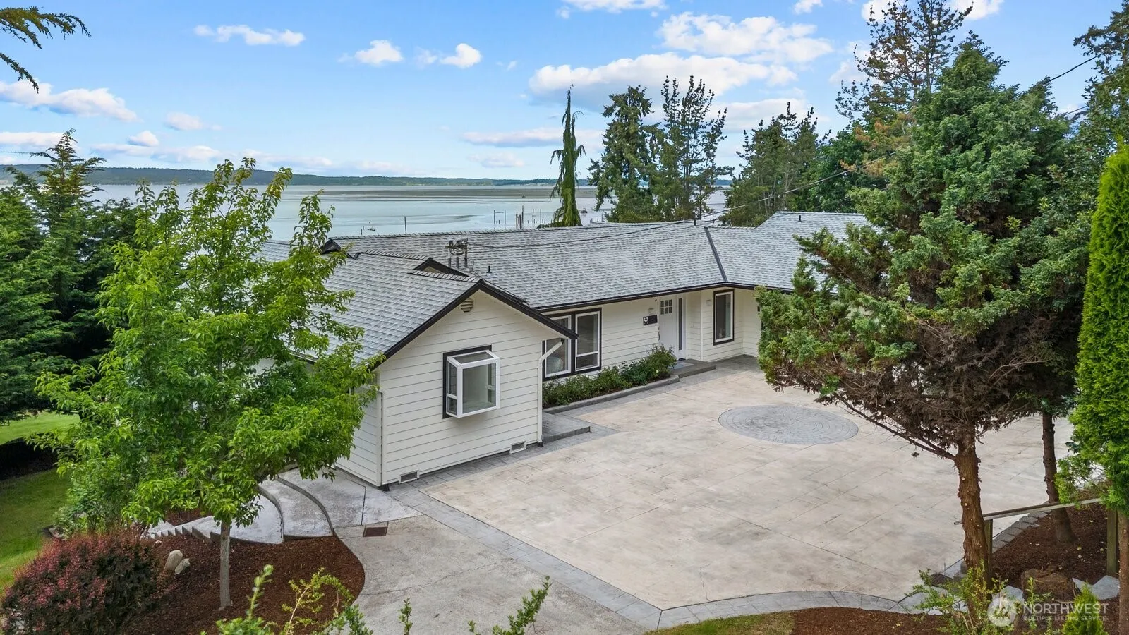 Beach, Light & Views. Exceptionally rare west-facing waterfront home, fully remodeled, guest studio, on a near-acre lot and 150+ ft of private beach. Light filled, with stunning water views from every room! High-end main kitchen with brand new Sub-Zero fridge, Wolf range, & beach-inspired finishes. Main-floor primary suite offers vaulted ceilings & a spa-like bath. Lower level includes a second kitchen, walk-out patio & separate entrance. Cozy ADU with amazing views, is perfect for rental or private office. Wrap-around driveway, 2-car garage, & large carport. Easy beach access for walking, kayaking, & wildlife watching. This move-in ready home is perfect for relaxing & entertaining. Welcome to Warm Beach living with sunsets & serenity!
