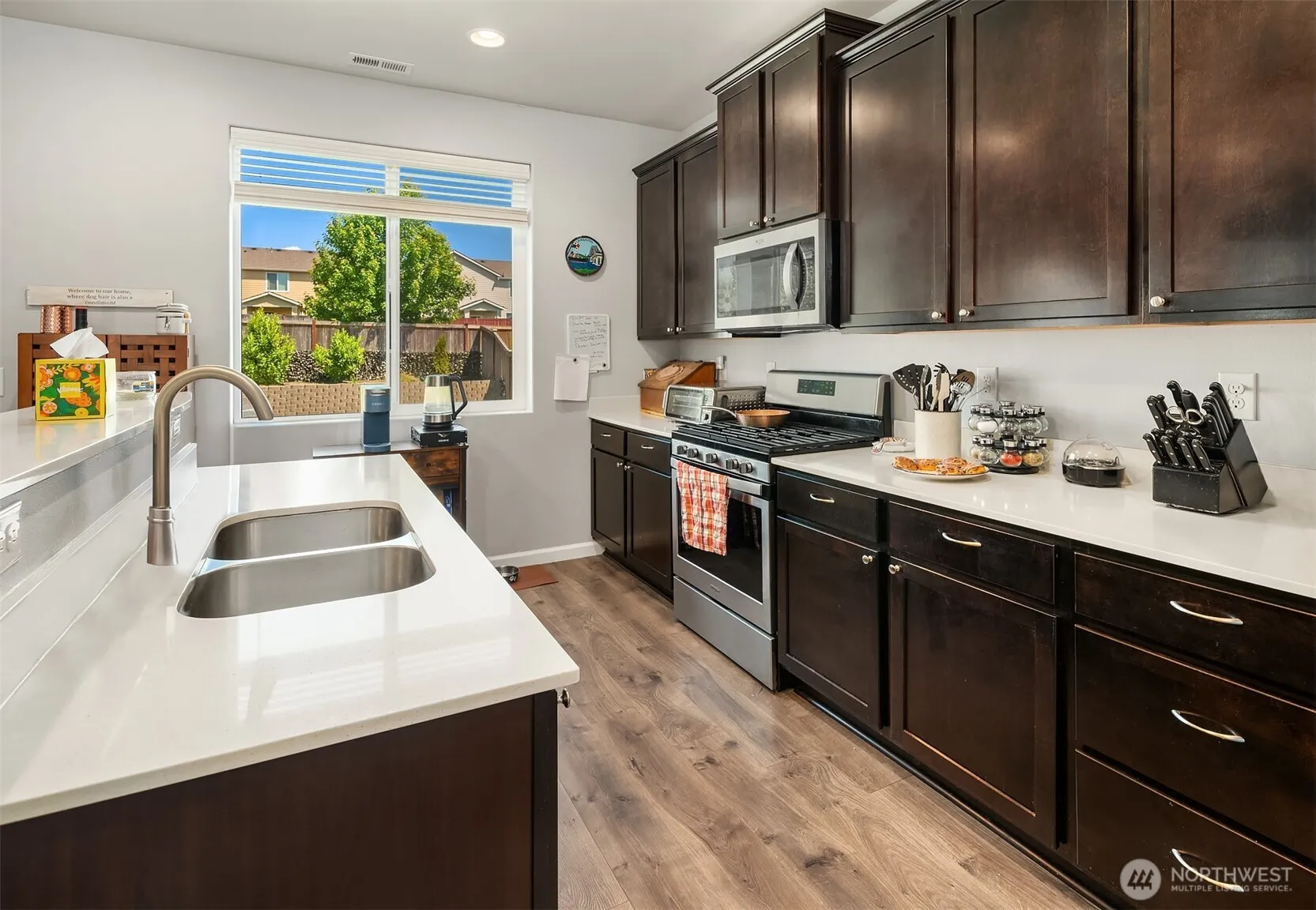 Experience spacious, stylish living in this 4-bedroom, 2.5-bath home, ideal for entertaining and everyday comfort. It features multiple living areas including a large living room, separate downstairs den, and expansive upstairs game room. The dining area opens to a covered backyard patio overlooking a landscaped yard with a custom retaining wall, perfect for gardening and improved drainage. The modern kitchen includes stainless steel appliances and a generous pantry. A covered front porch and landscaped yard add curb appeal. Located in a quiet, friendly neighborhood known for safety and community spirit, this home offers the perfect blend of space, style, and warmth.