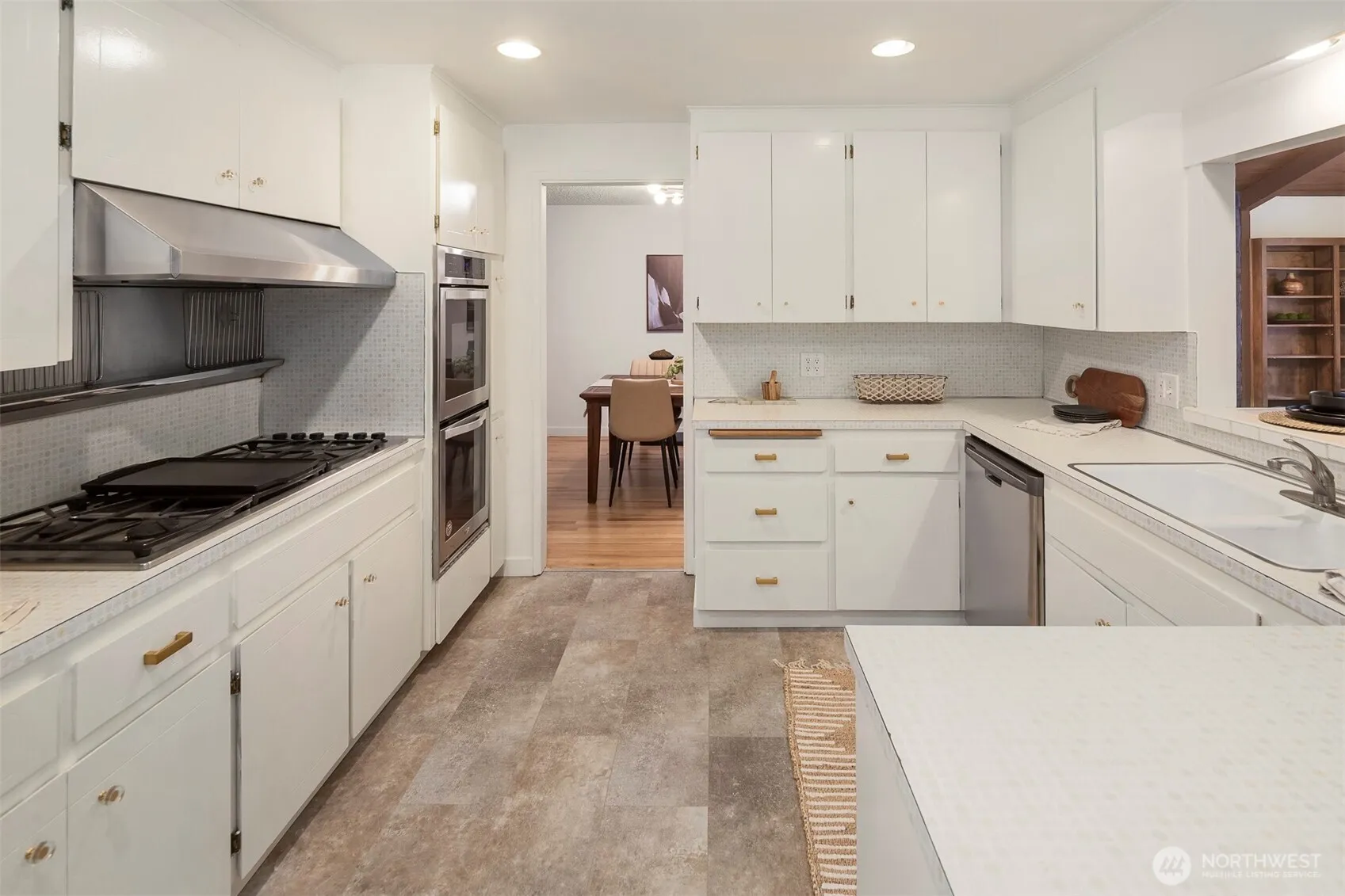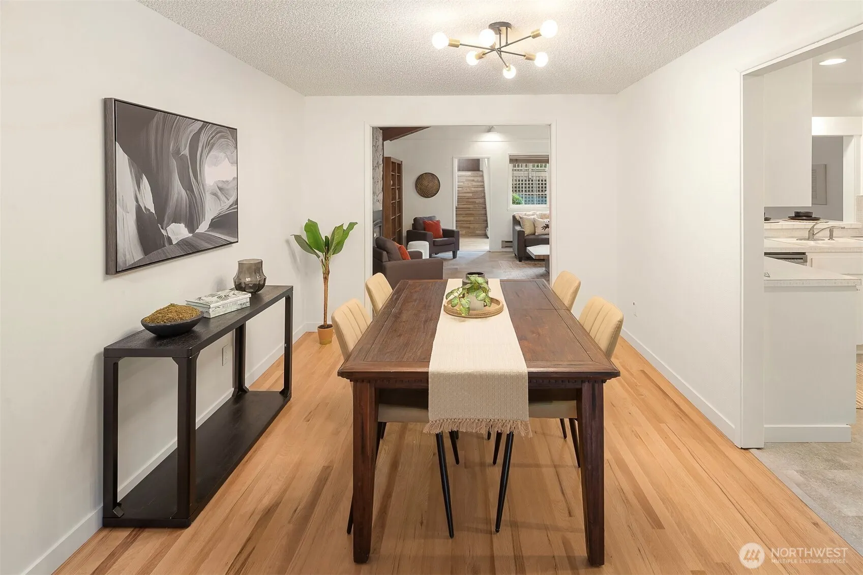 Located on a quiet cul-de-sac, this Ray Anderson mid-century gem has it all. A beautifully landscaped yard with mature plantings welcomes you as you ascend the front steps. Freshly refinished hardwood floors, large bay windows and a gas fireplace add warmth and light to the living room. Dining room opens into kitchen and den with vaulted wood ceilings and gas fireplace. Eat-in kitchen with SS appliances, 6-burner gas stove, double oven. Spacious main floor primary with 3/4 bath and walk-in closet. Three additional beds and full bath upstairs. Downstairs has rec/media room with gas fireplace, two bedrooms, bathroom, oversized garage, and laundry. Entertain on the multi-level deck & basketball court, before unwinding in the hot tub & sauna!