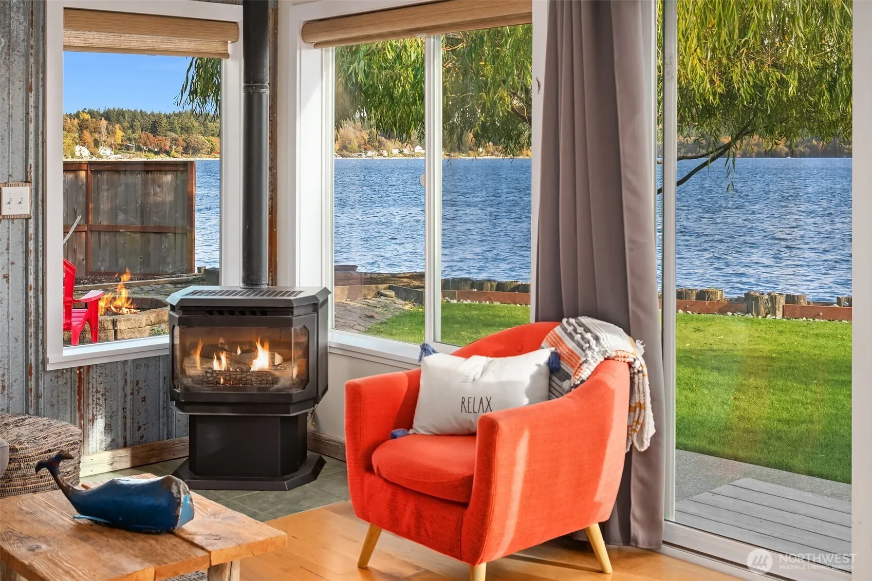 Enjoy exceptional waterfront island living in this perfectly sized home offering 150 feet of low-bank shoreline, sweeping views of Quartermaster Harbor, two tax parcels, boat launch, a registered mooring buoy, and unforgettable sunrises over Mt Rainer. Inside, a wall of windows frame the views while the cozy interior blends charm with modern comfort, featuring hardwood, tile, and wall to wall carpet floors, two freestanding gas stoves, and a spacious dining room ideal for entertaining. Outside enjoy a beachside fire pit, a lawn that stretches to a deck at the water’s edge – true island living. Proven short-term rental success adds investment appeal, and most furnishing may remain.