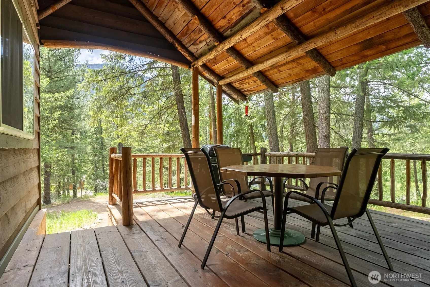 Mazama legal nightly rental—come check out Fawn Creek Hideaway! This 1,229 sf 2-bed, 2-bath cabin is full of rustic charm. From the river rock hearth to exposed tree-limb rafters, you’ll feel on mountain time. Free standing propane stove for winter ambiance and mini split for easy efficient heating and cooling. Radiant floor heat warms the dining nook, overlooking a 1.15-acre forested yard leading to West Fawn Creek. Hear the burbling creek from your back deck or stroll over the electric sauna. A large covered front deck provides shade on sunny days—or cool off in the community pool. Primary bed with ensuite upstairs. Fully furnished and rental-ready between personal stays. Hit the neighborhood trails that link to Methow Trails and beyond!