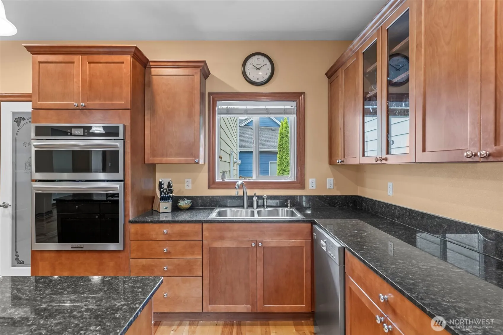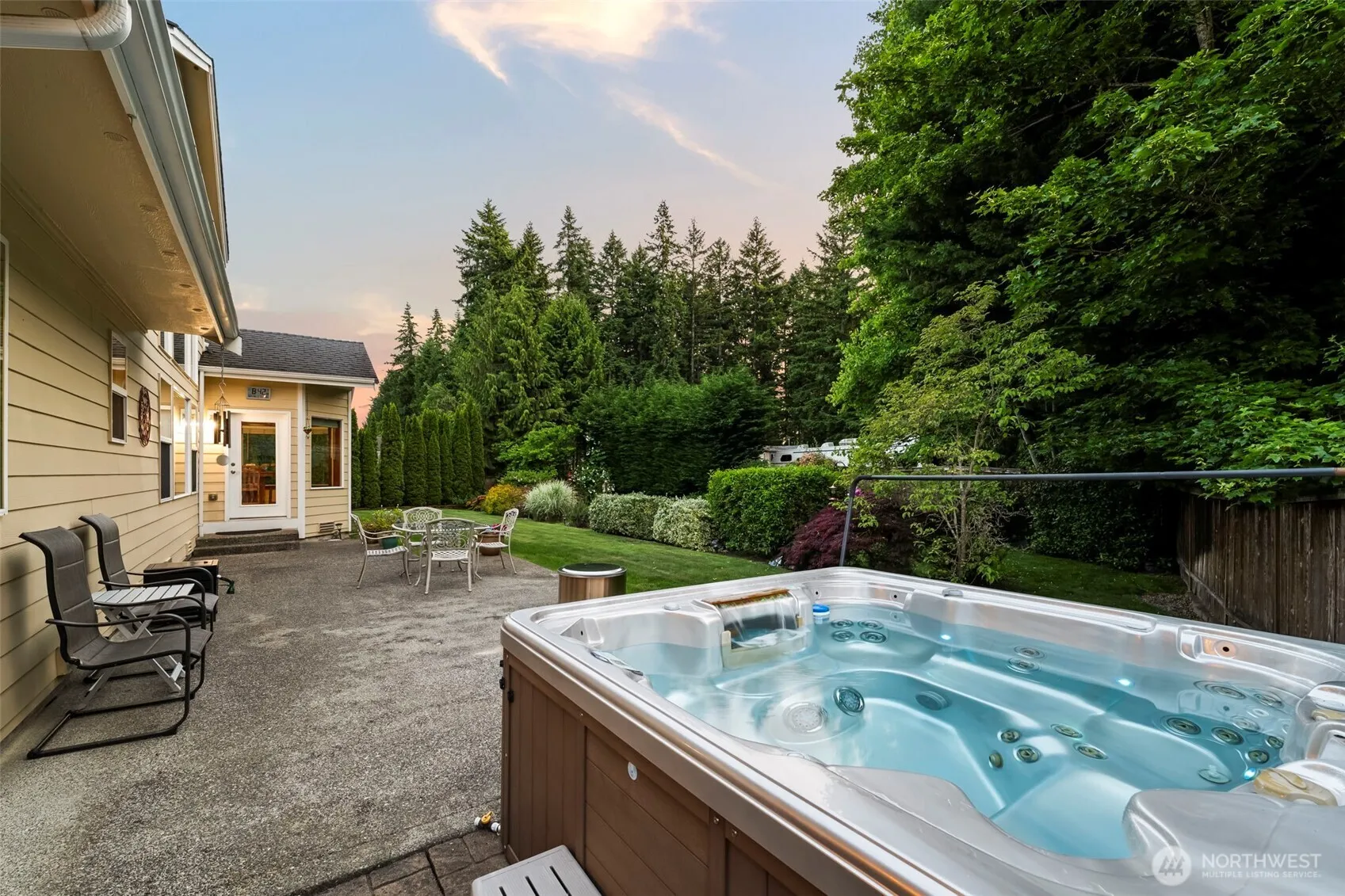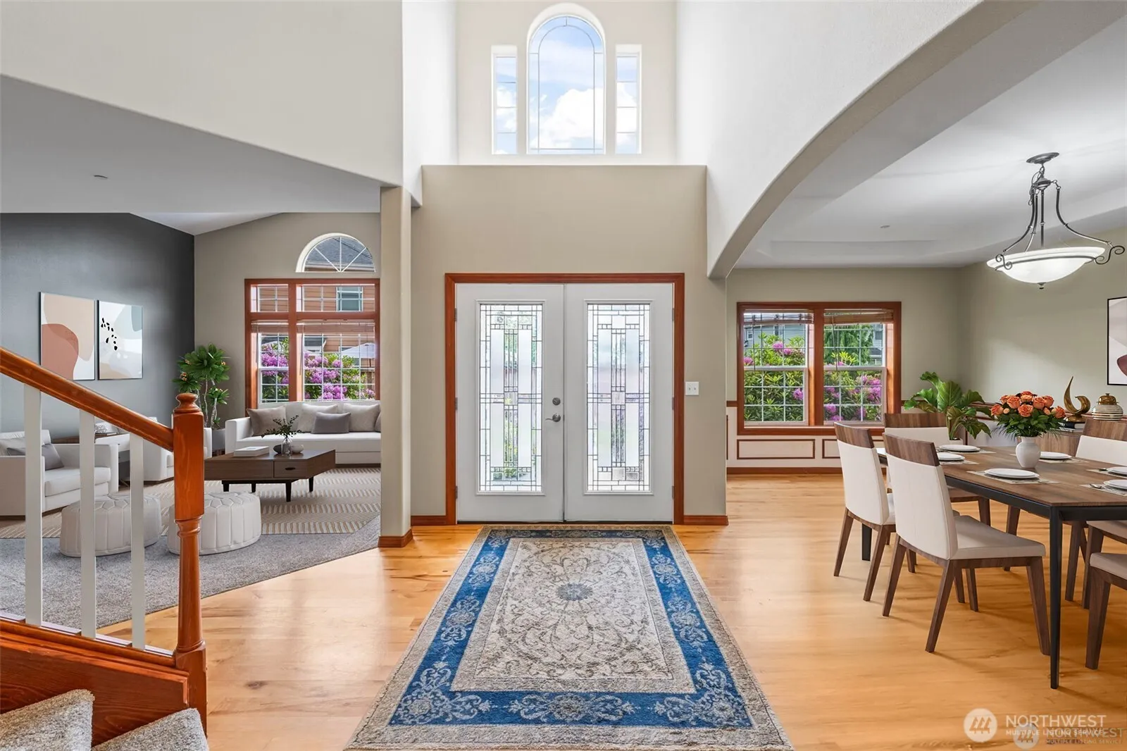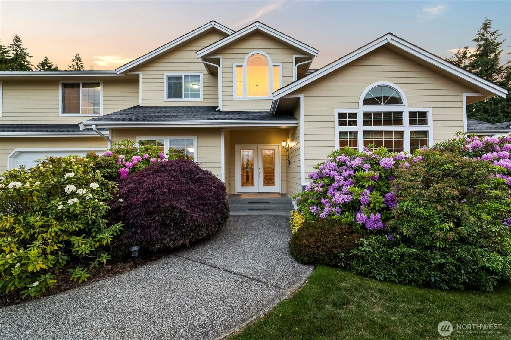 Main level primary w/5 rooms upstairs. On just under ½ acre in Grandview Ridge— minutes to local boat launch, shopping & HWY 410. Located in the Dieringer School District. Offering vaulted ceilings in primary suite & spa-like 5-piece bath, walk-in closet dual-sided fireplace & private covered back patio. Soaring ceilings & grand staircase welcome you. Oversized windows in the great room. Chef’s kitchen features granite counters, cherry cabinets, walk-in pantry & breakfast nook. Home office & formal dining w/butler pantry & laundry with storage & sink. Upstairs: 5 rooms including private en-suite. A/C, 4-car garage w/extra tall 3rd bay, fully fenced w/large entertaining patio & hot tub. Gated entry w/ community sports court & playground.