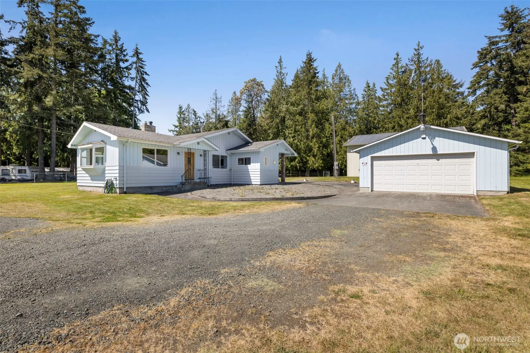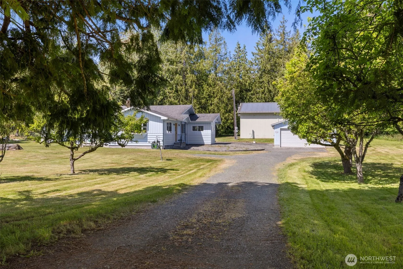 This is an extremely rare parcel with a giant shop (multiple EV charging), detached garage and go kart track on almost 2.5 acres. The house is a darling little gem with lots of vintage character including wood paneling, pine cabinetry in the kitchen and a nearly untouched time capsule bathroom with original pink tub! There is also a recently updated bathroom with walk in shower. Although this home is a cosmetic fixer, we got you started with fresh paint and carpet. And there is a heat pump with AC! The possibilities are endless with this property! YOU MUST HAVE A REAL ESTATE BROKER WITH YOU TO GO ON PROPERTY