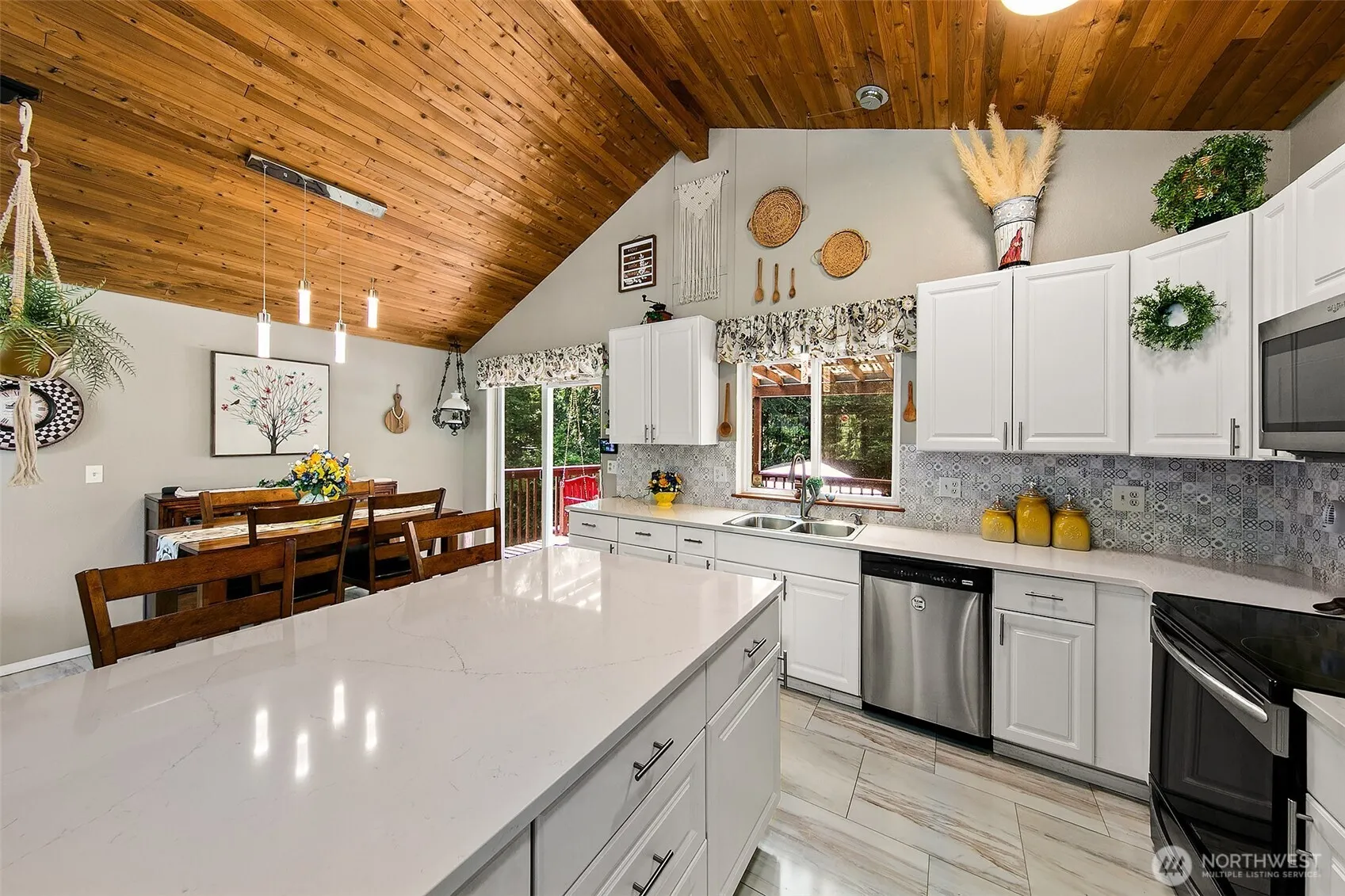 Discover unparalleled privacy with this NW contemporary home settled on nearly 4 acres! Cedar vaulted ceilings throughout great room. Updated open kitchen boasts newer cabinets, appliances, and beautiful island with abundance of storage. Upstairs includes two bathrooms and three bedrooms, including the primary with a solarium off the suite. Lower level outfitted with full kitchen, bedroom, office, and laundry room with 3/4 bath. Large family room ready for your vision, plus sunny craft room. Huge permitted garage with additional covered parking for boat or RV! Stunning yard with gazebo perfect for hosting. You don’t want to miss this Arlington oasis!