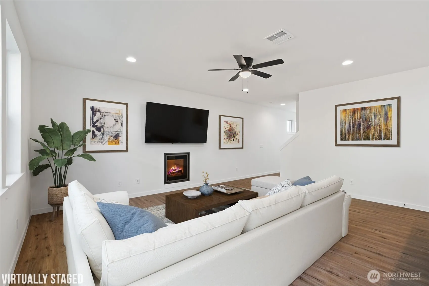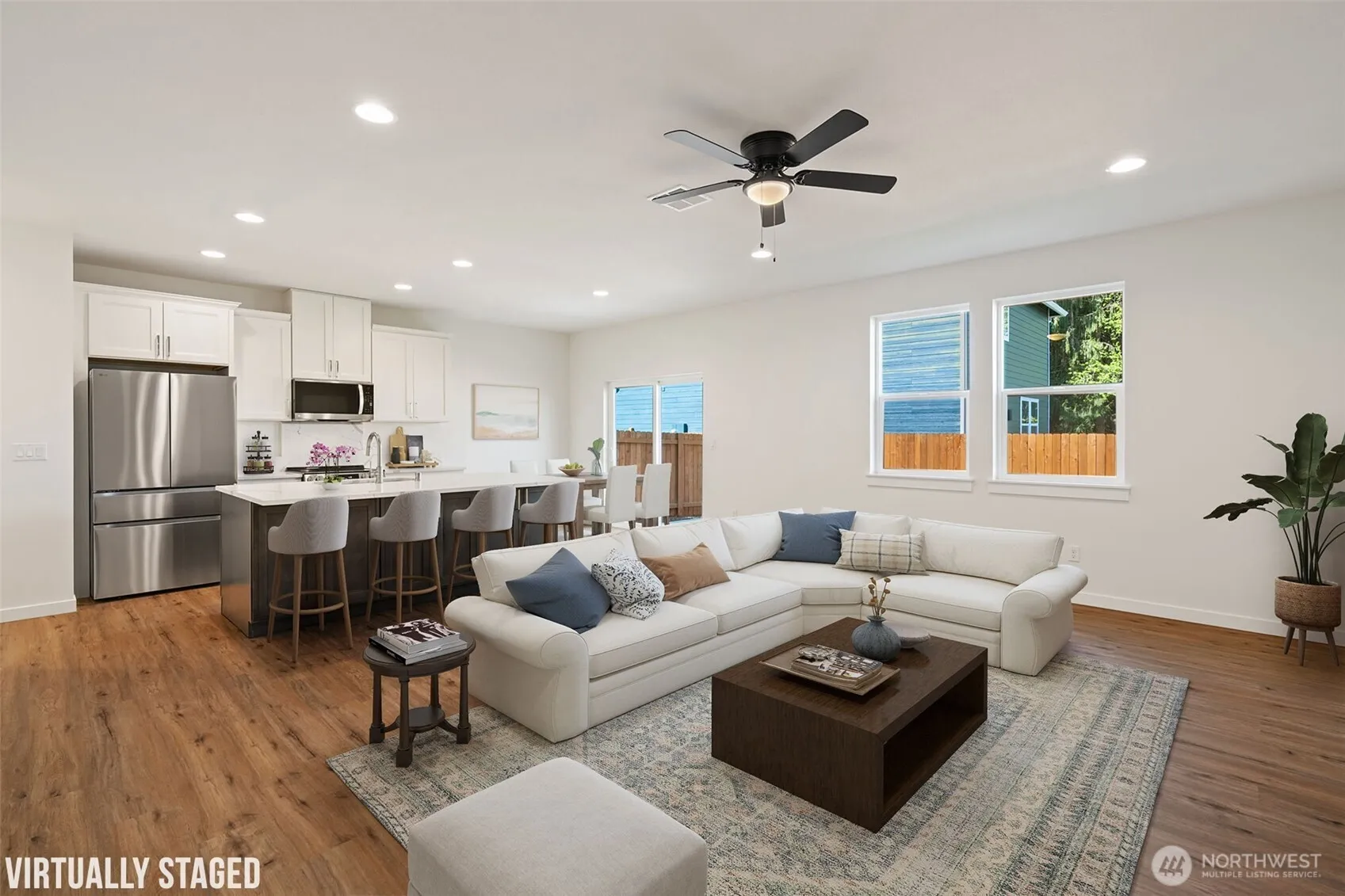 MOVE-IN-READY! ASK ABOUT OUR CURRENT INCENTIVES! Charming new homes built and move in ready! 3 bed + loft, 2 1/2 baths, 2 car garage. Covered front porch, back patio. Kitchen with electric range, micro-hood, refrigerator included!!, center island, under stairs pantry/storage. Main floor has Luxury Vinyl Plank flooring for long lasting and easy maintenance. Upstairs has carpet in rooms and loft. Laundry is upstairs for convenience. Heat pump with AC, Quartz countertops, upper baths tile. 1854 square feet, Primary Suite with french doors, double sinks, walk in shower. CC&R’s but no HOA.